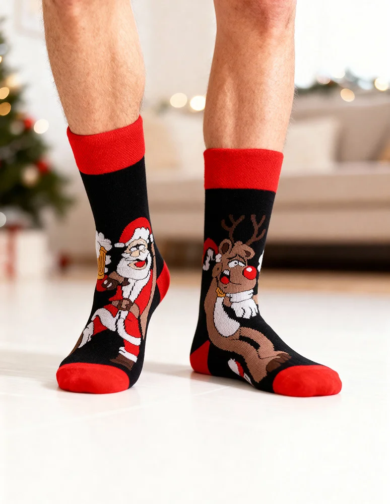 Skarpetki męskie długie nie do pary w świąteczny wzór WZÓR 1