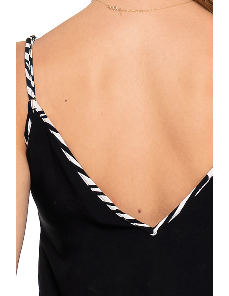 Piżama damska wiskozowa na ramiączkach wzór zeberka CZARNY