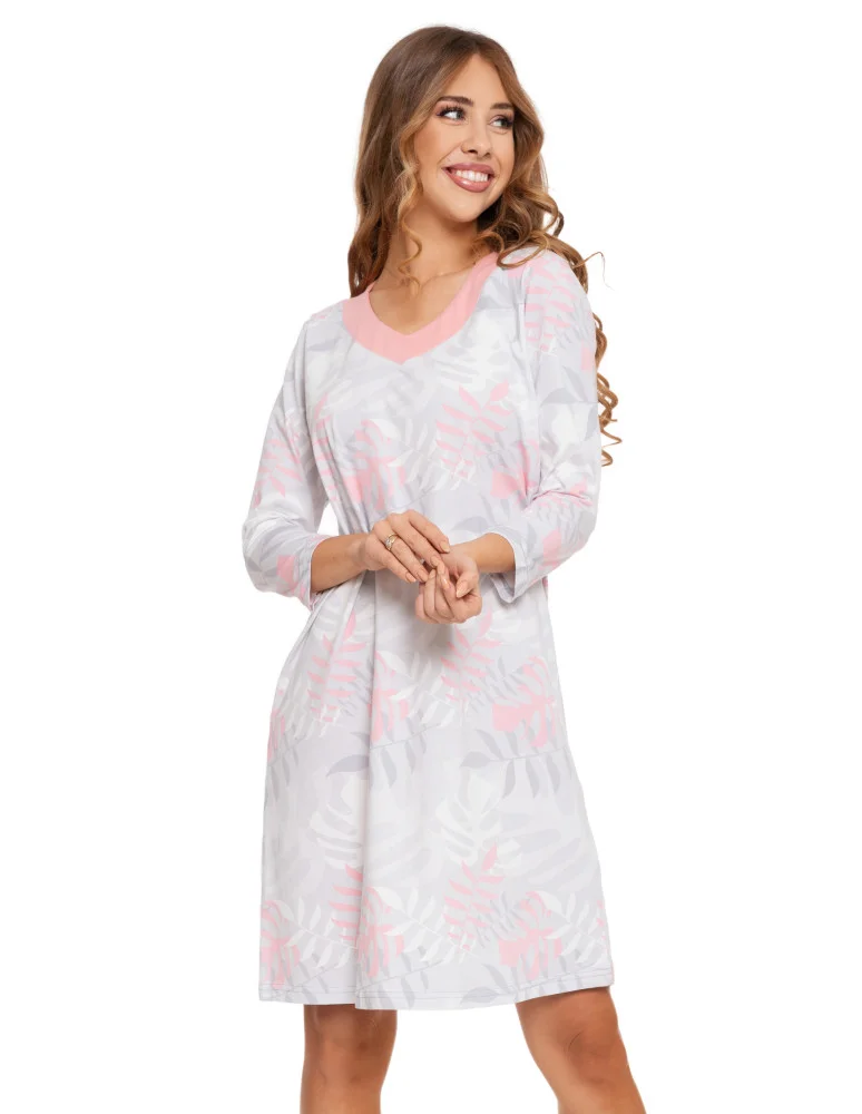 Koszula nocna damska bawełniana z rękawem 3/4 w kwiaty WZÓR 1