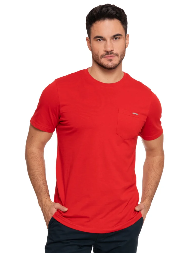 Koszulka męska T-shirt bawełniany z kieszonką BORDOWY