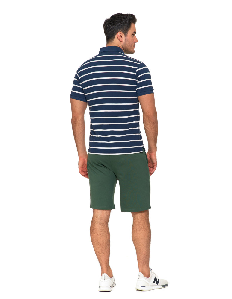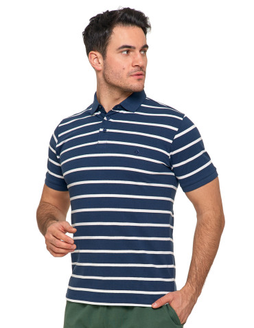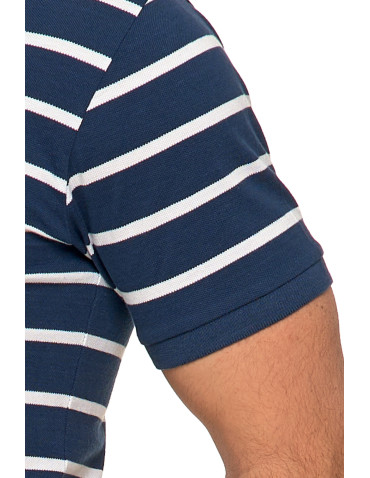 Koszulka polo męska bawełniana w paski GRANATOWY