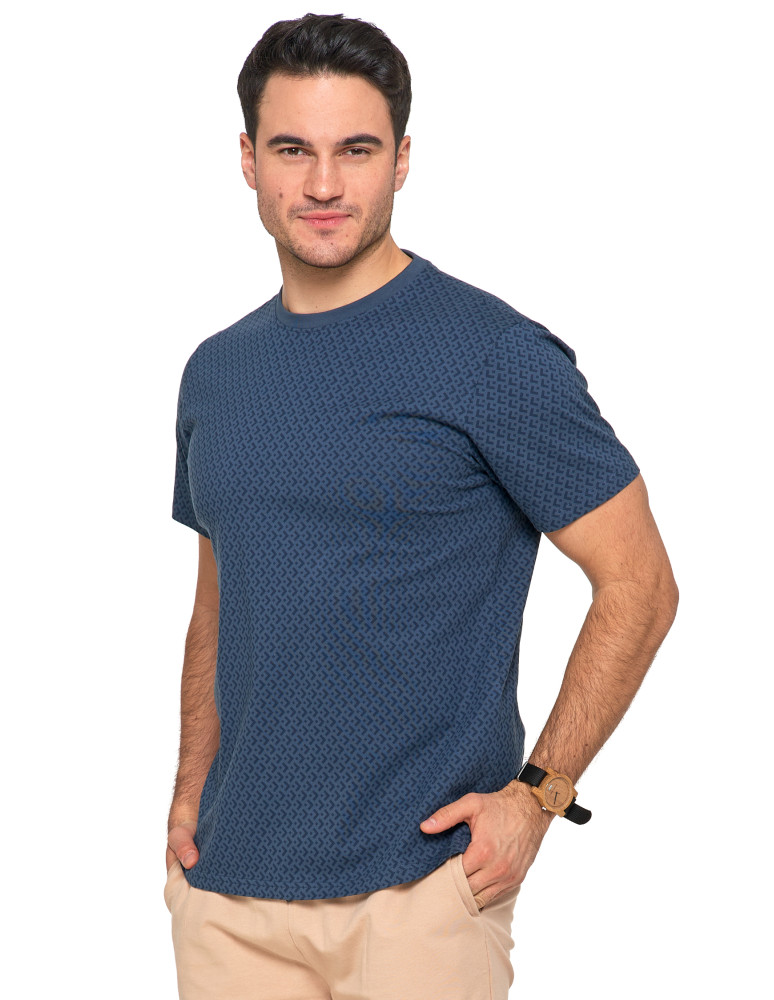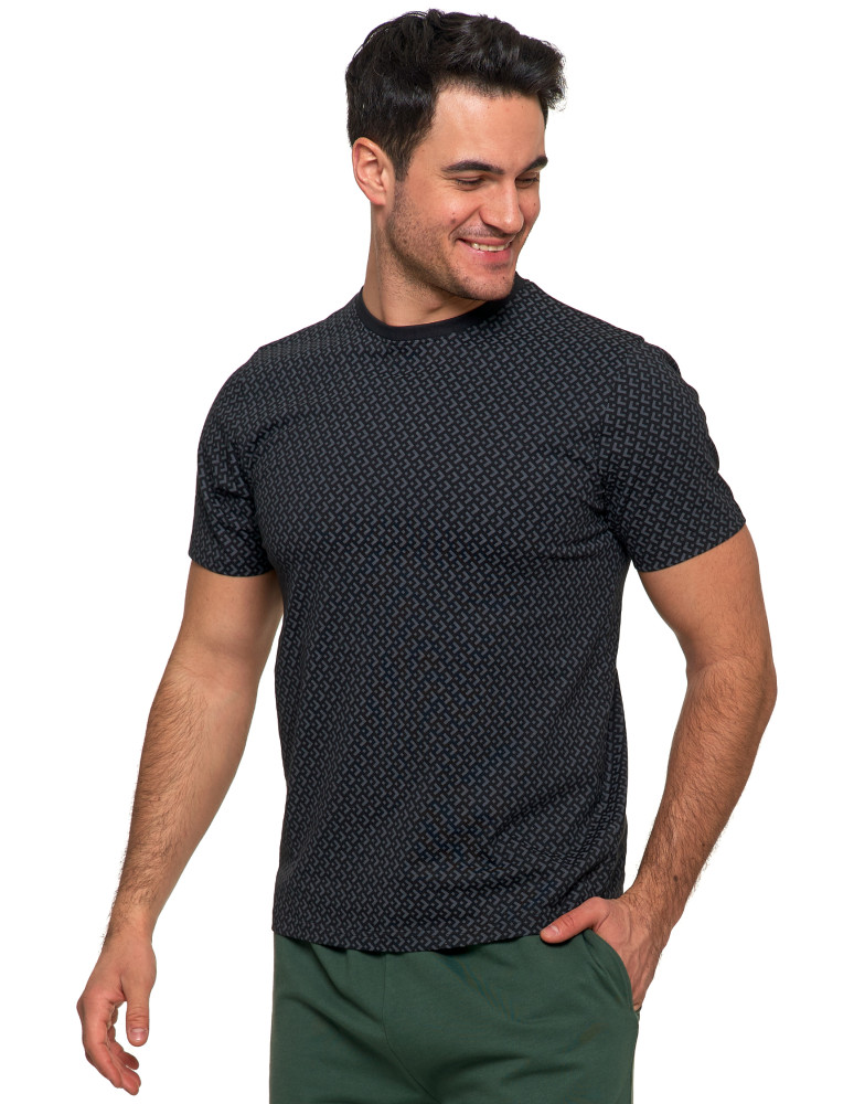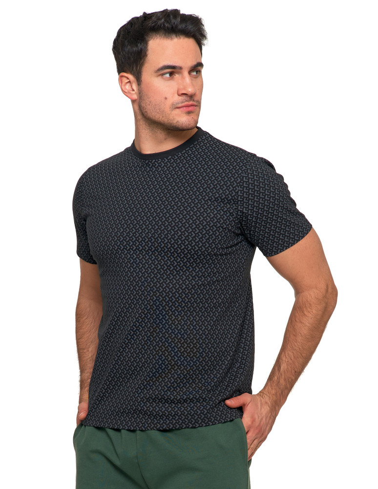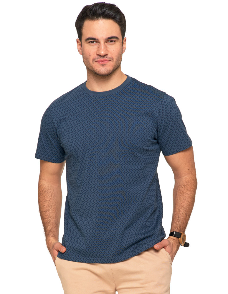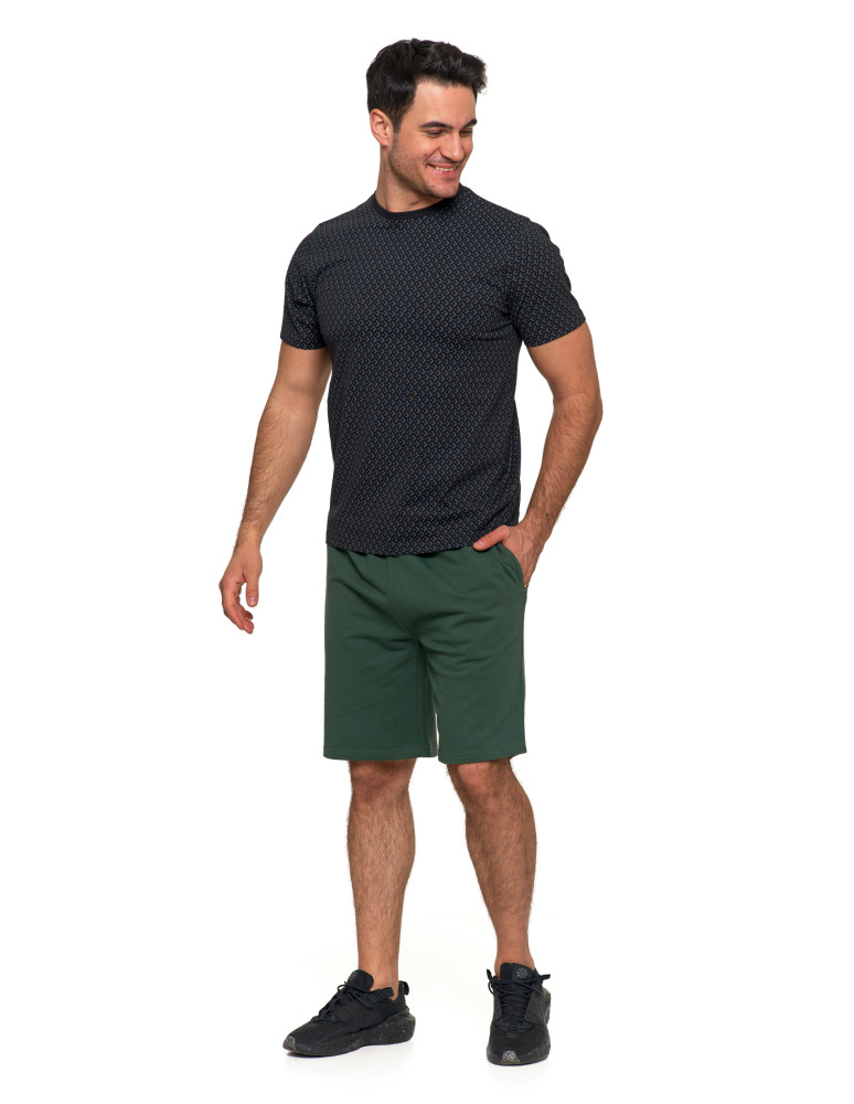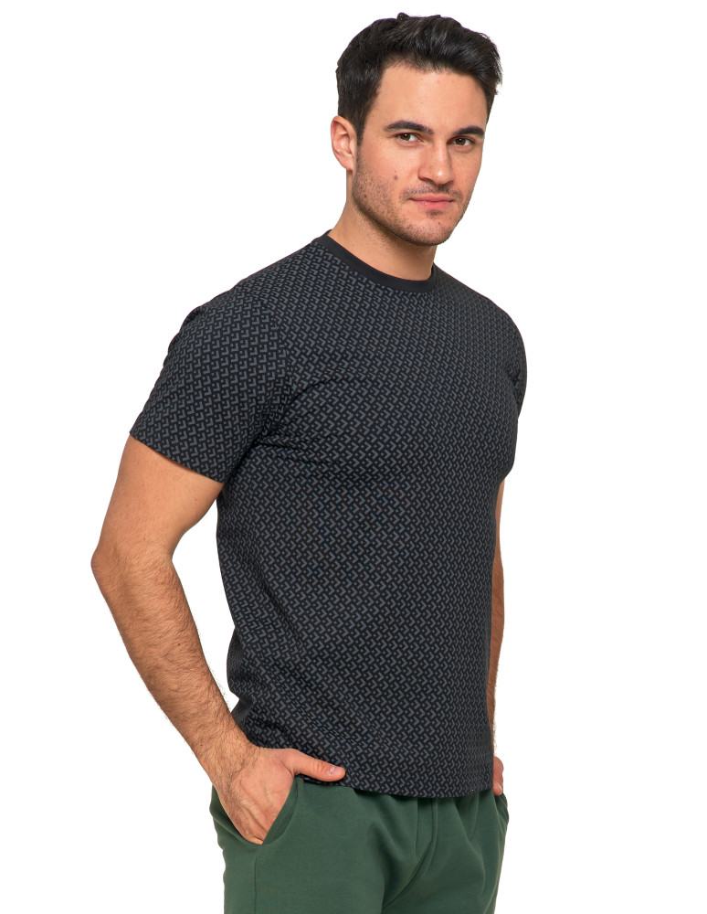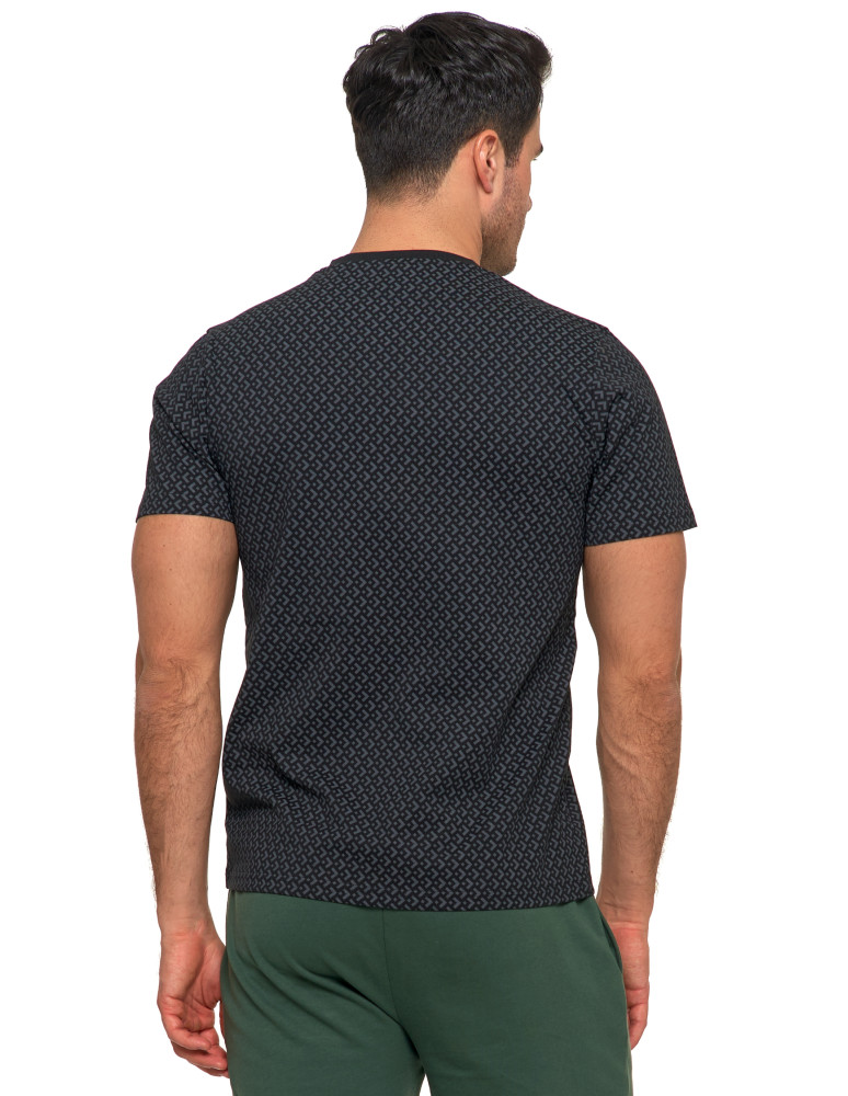 Koszulka męska bawełniana T-shirt nadruk allover ZIELONY