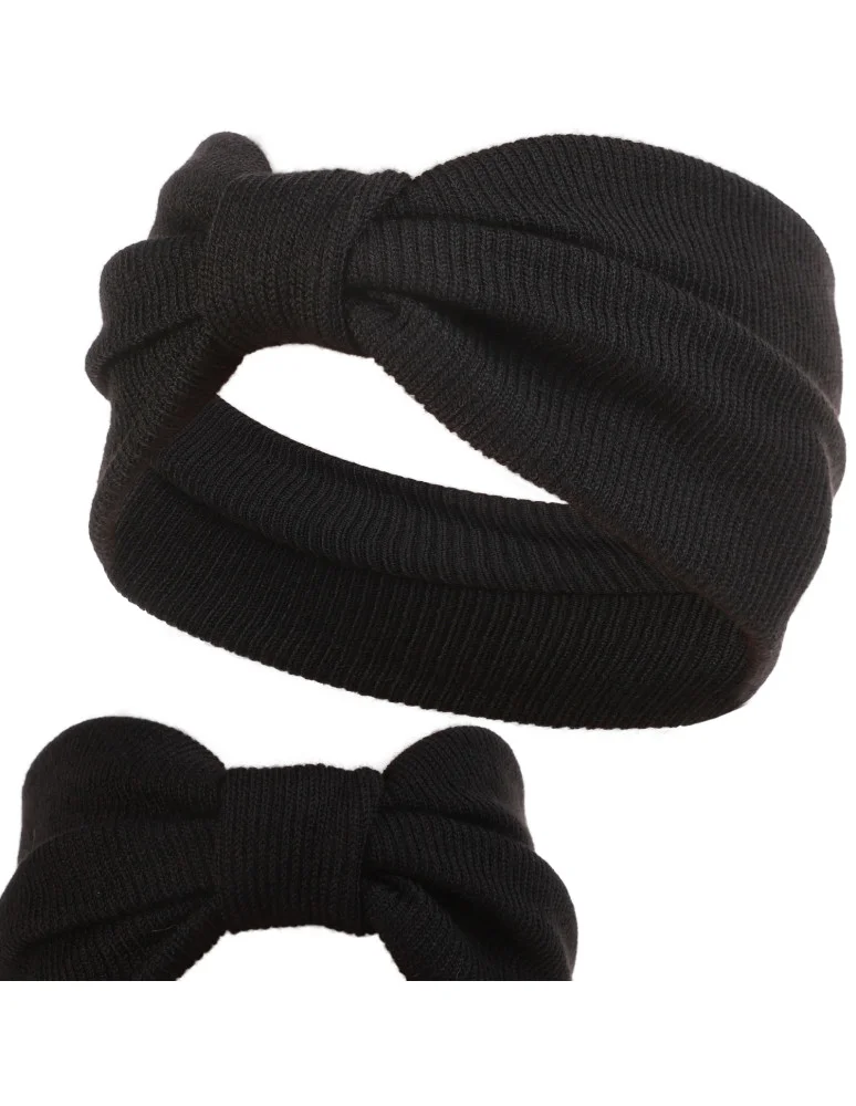 Opaska na uszy damska prążkowana ze splotem CZARNY