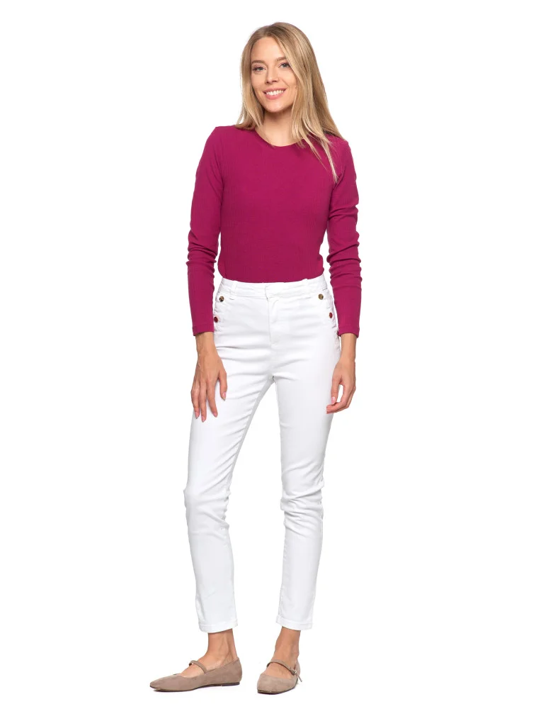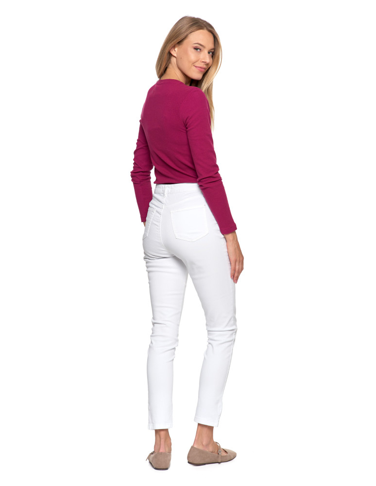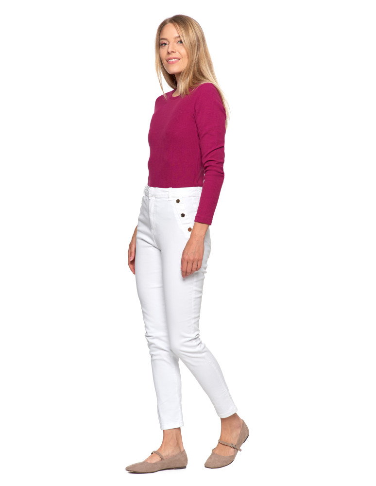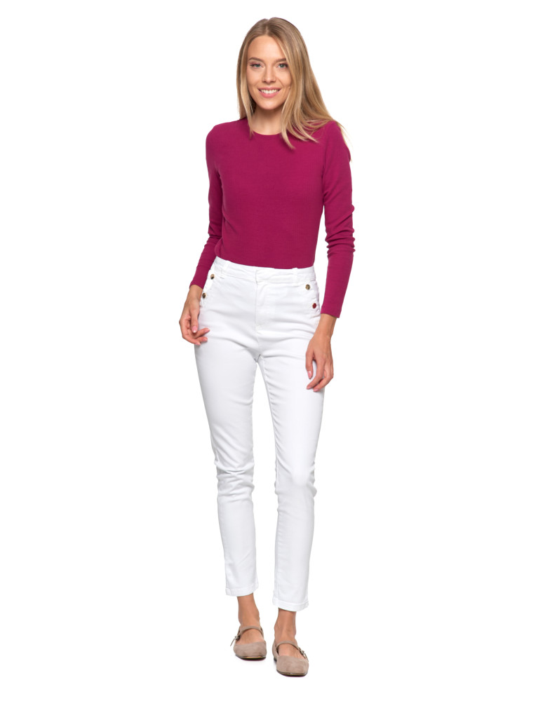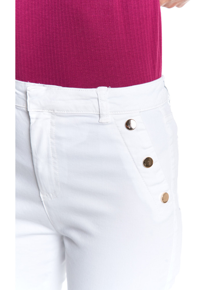 Spodnie damskie z wysokim stanem i złotymi guzikami BIAŁY