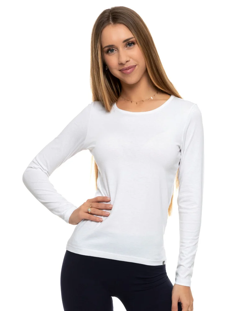 Podkoszulek damski bawełniany z długim rękawem BIAŁY