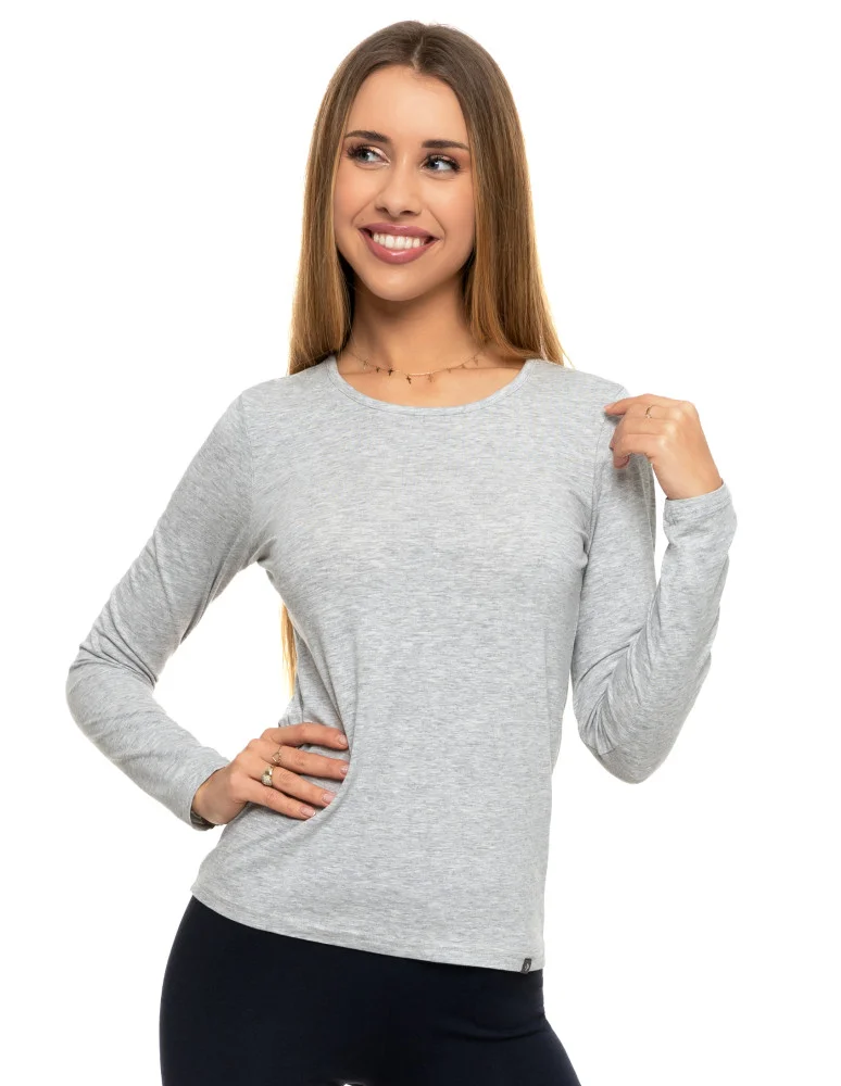 Podkoszulek damski bawełniany z długim rękawem JASNY SZARY