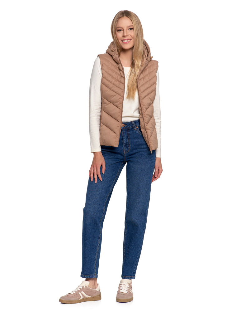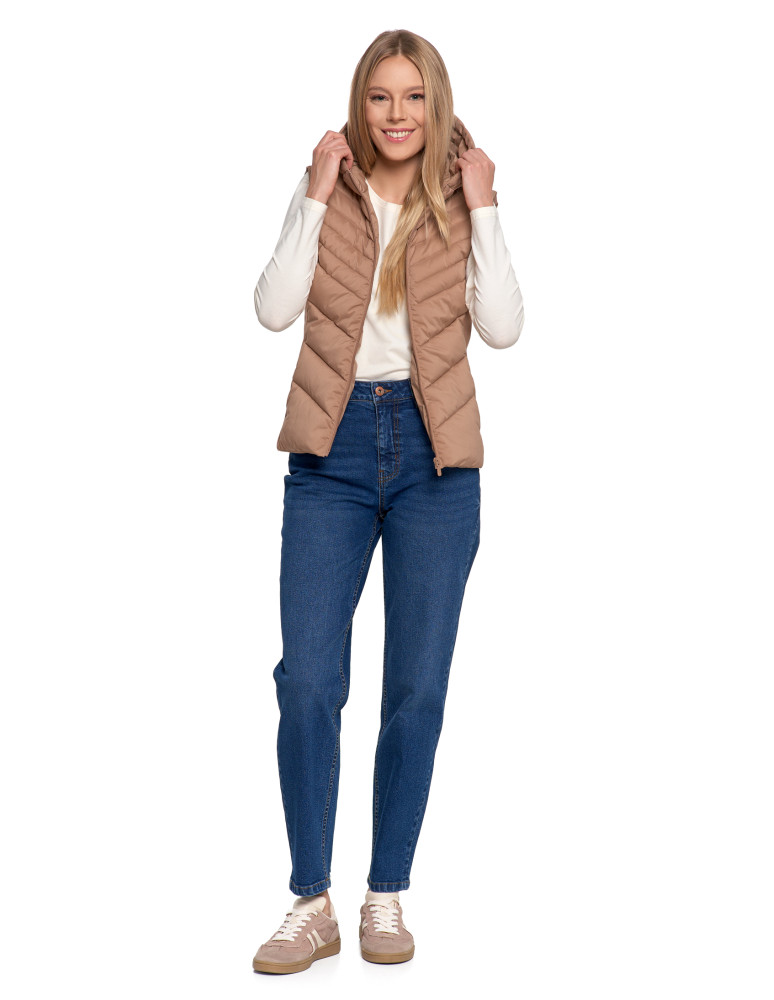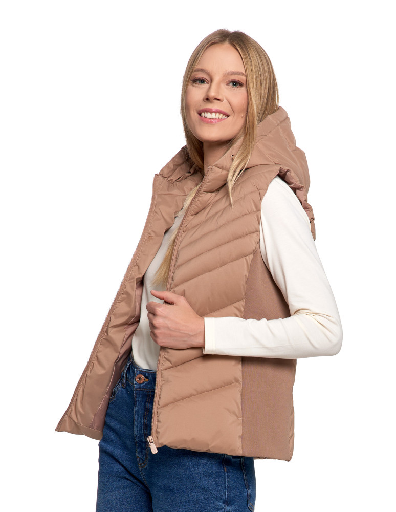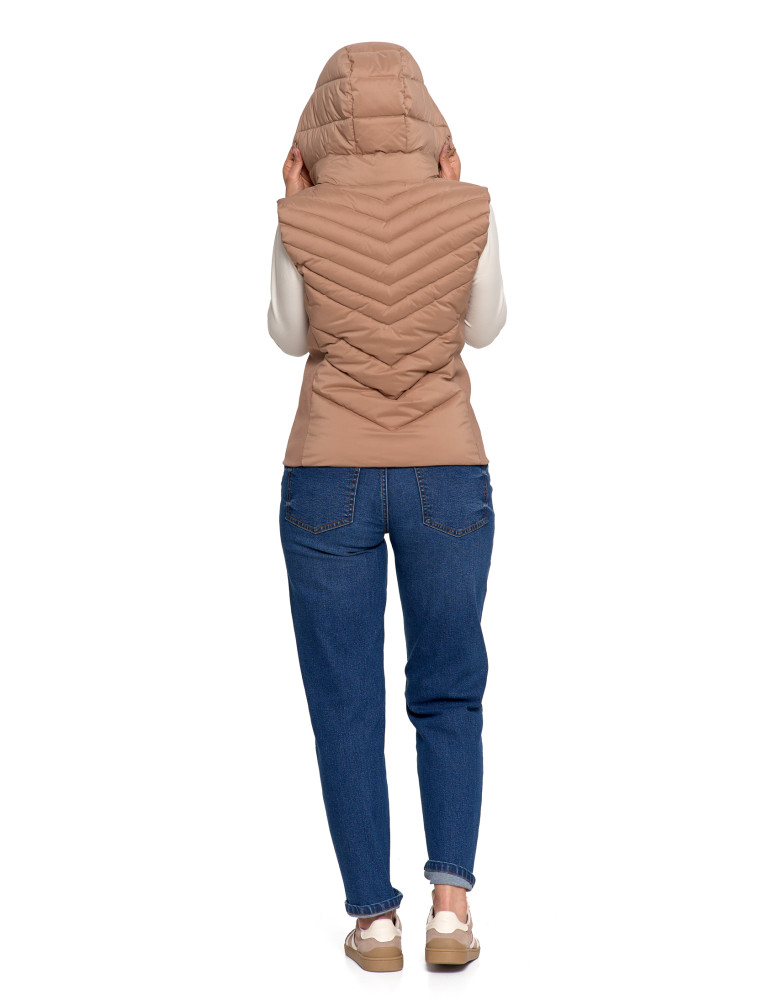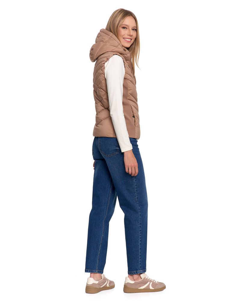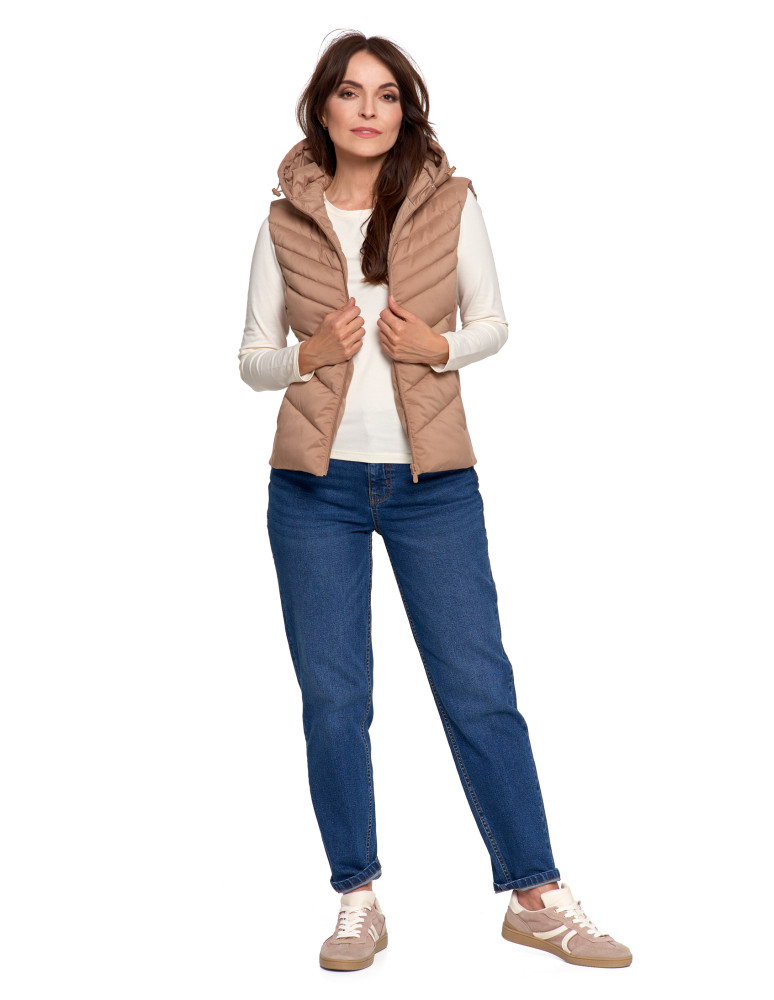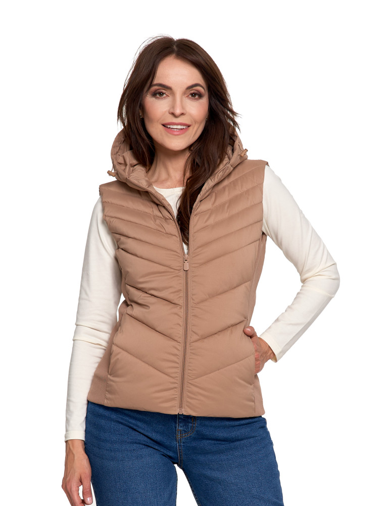 Damska kamizelka krótka pikowana z kapturem BEŻOWY