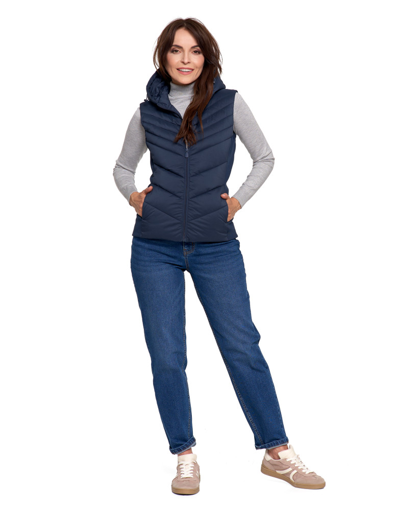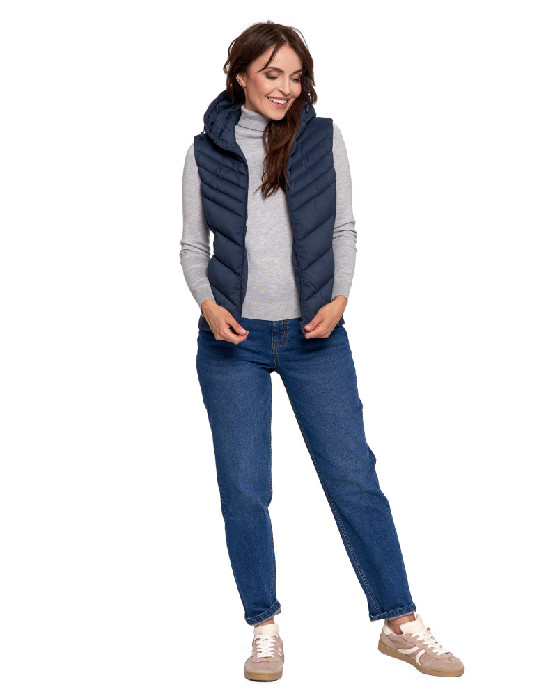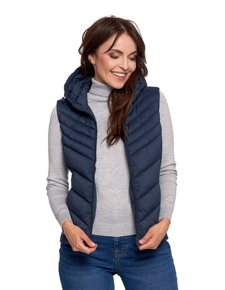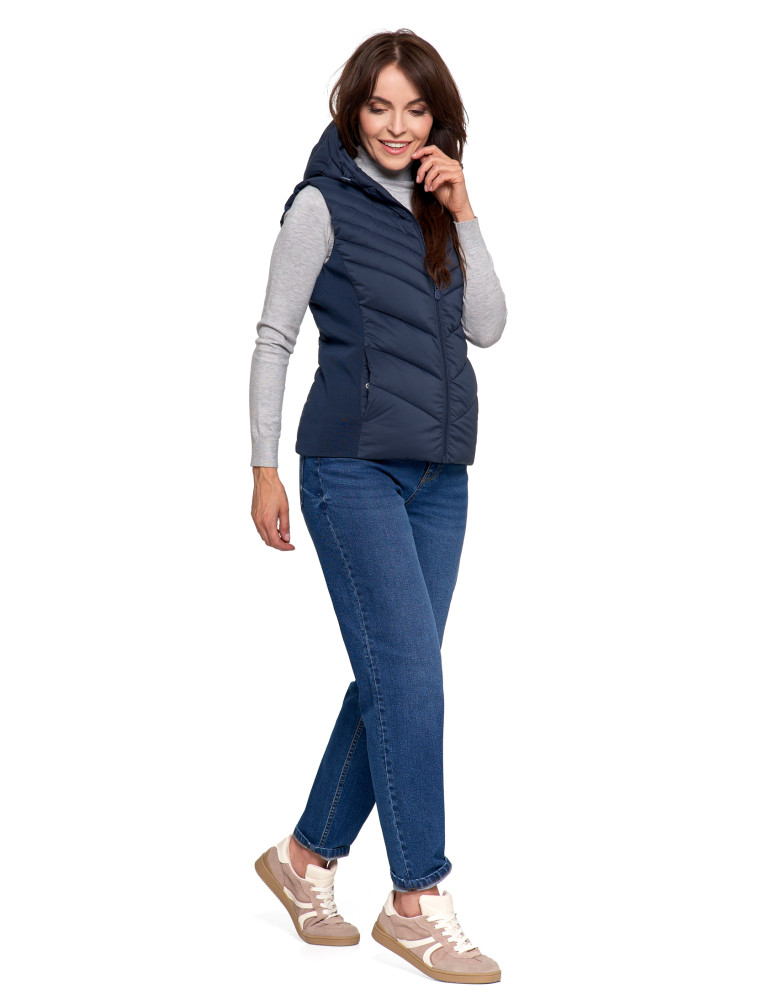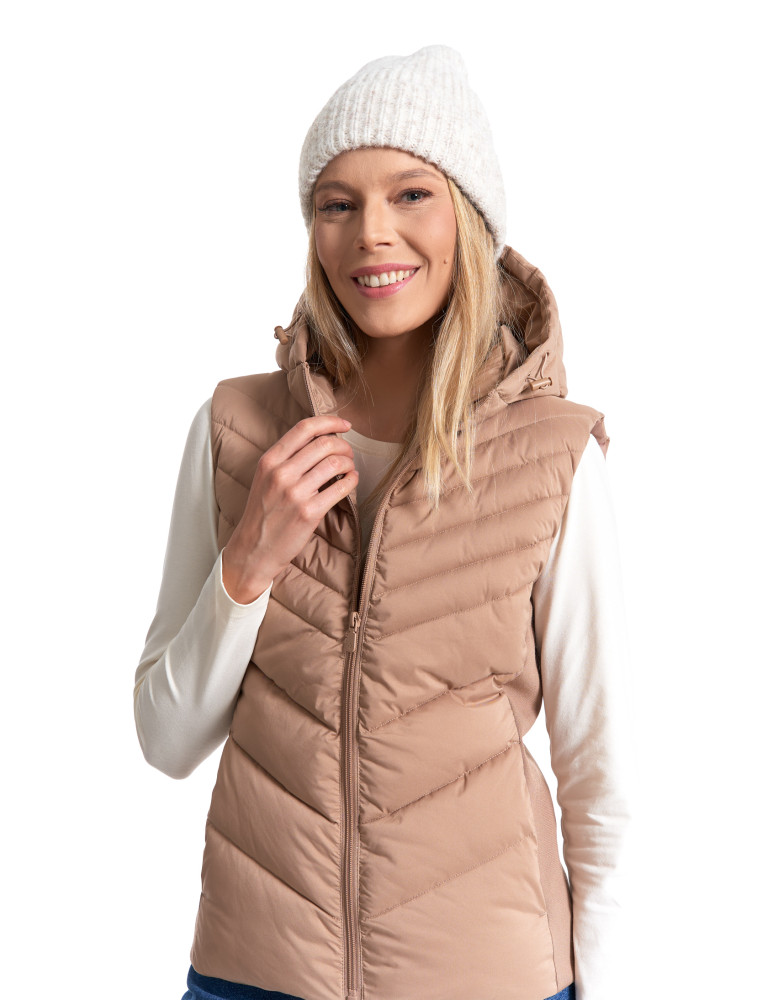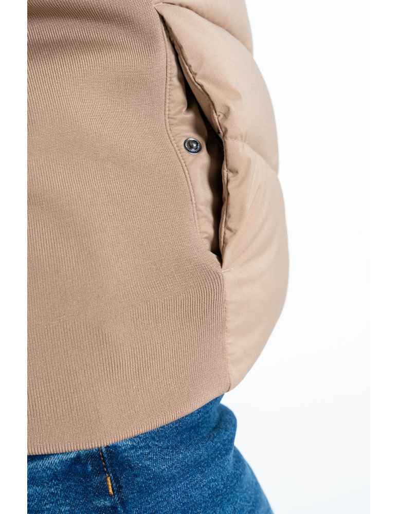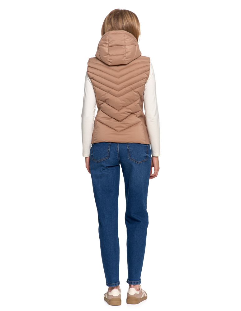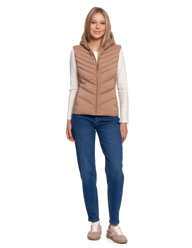 Damska kamizelka krótka pikowana z kapturem BEŻOWY