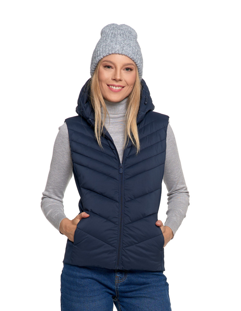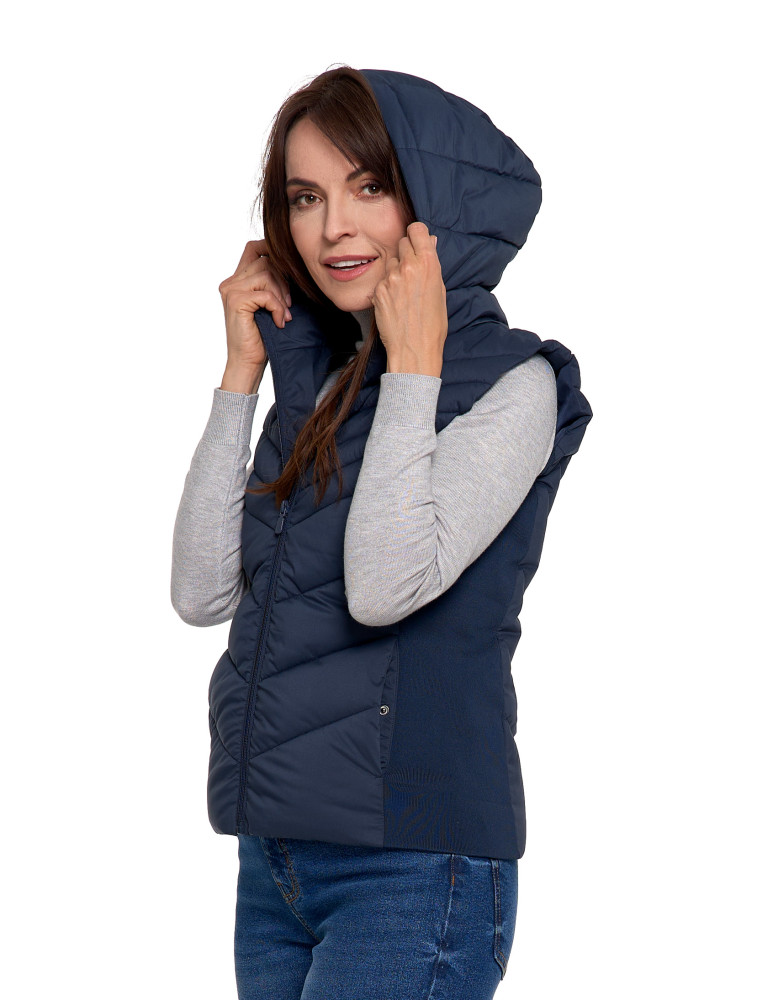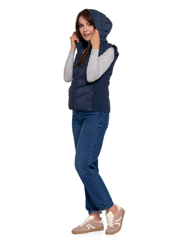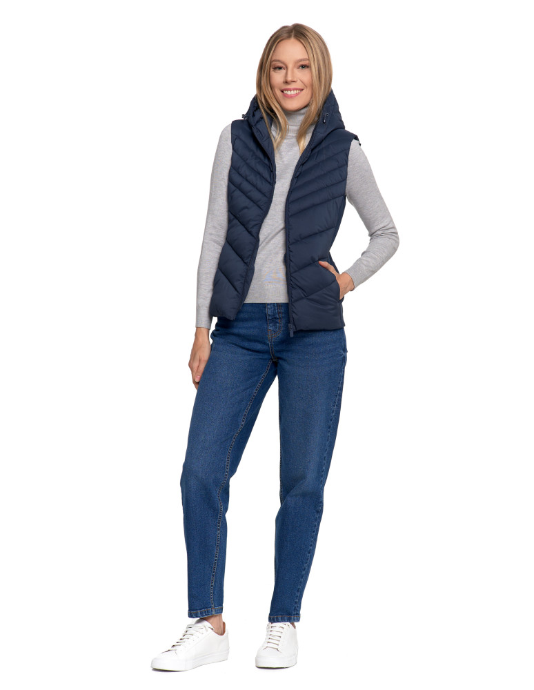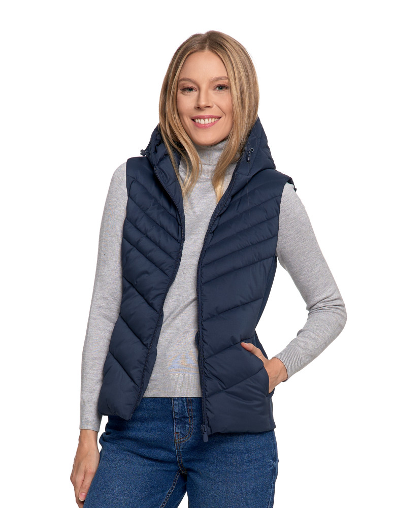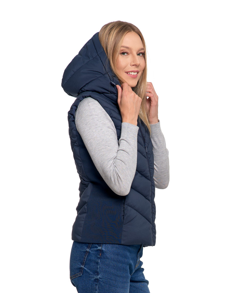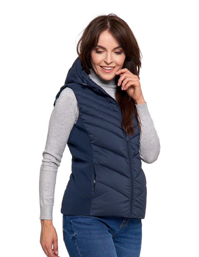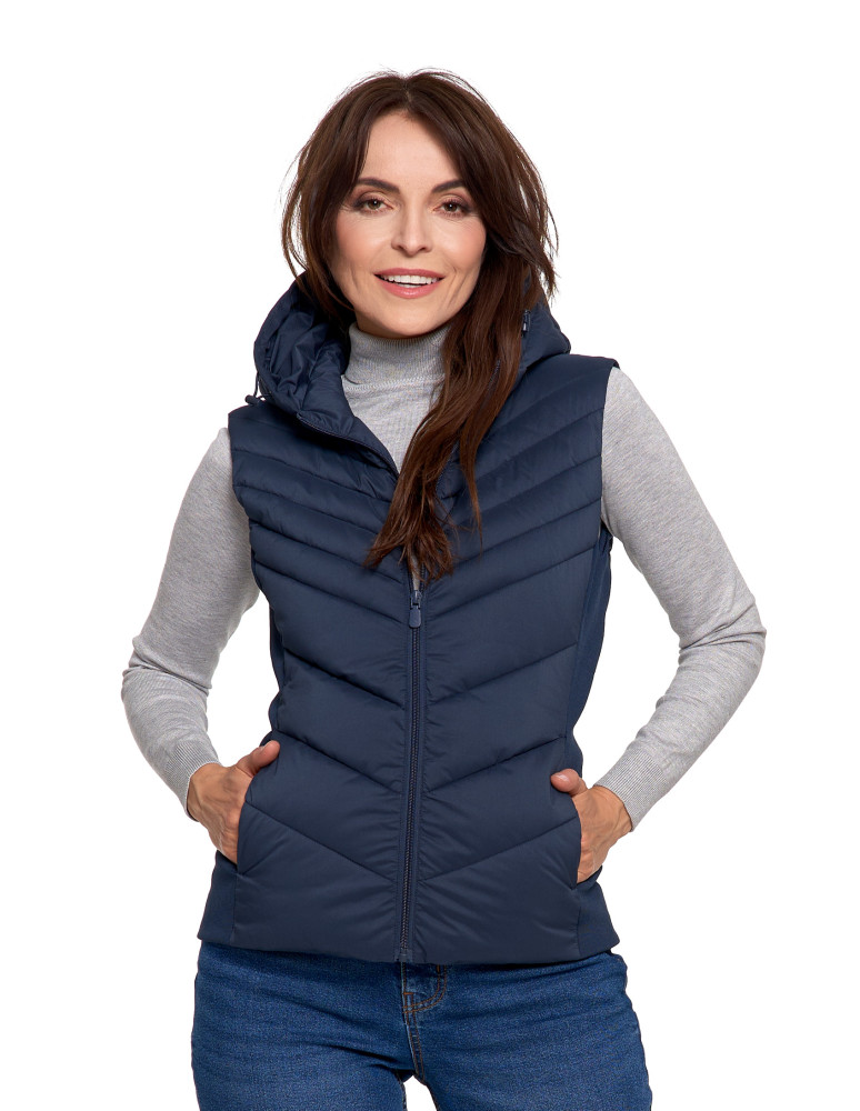 Damska kamizelka krótka pikowana z kapturem BEŻOWY