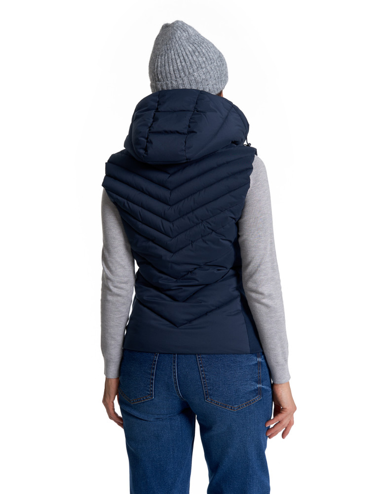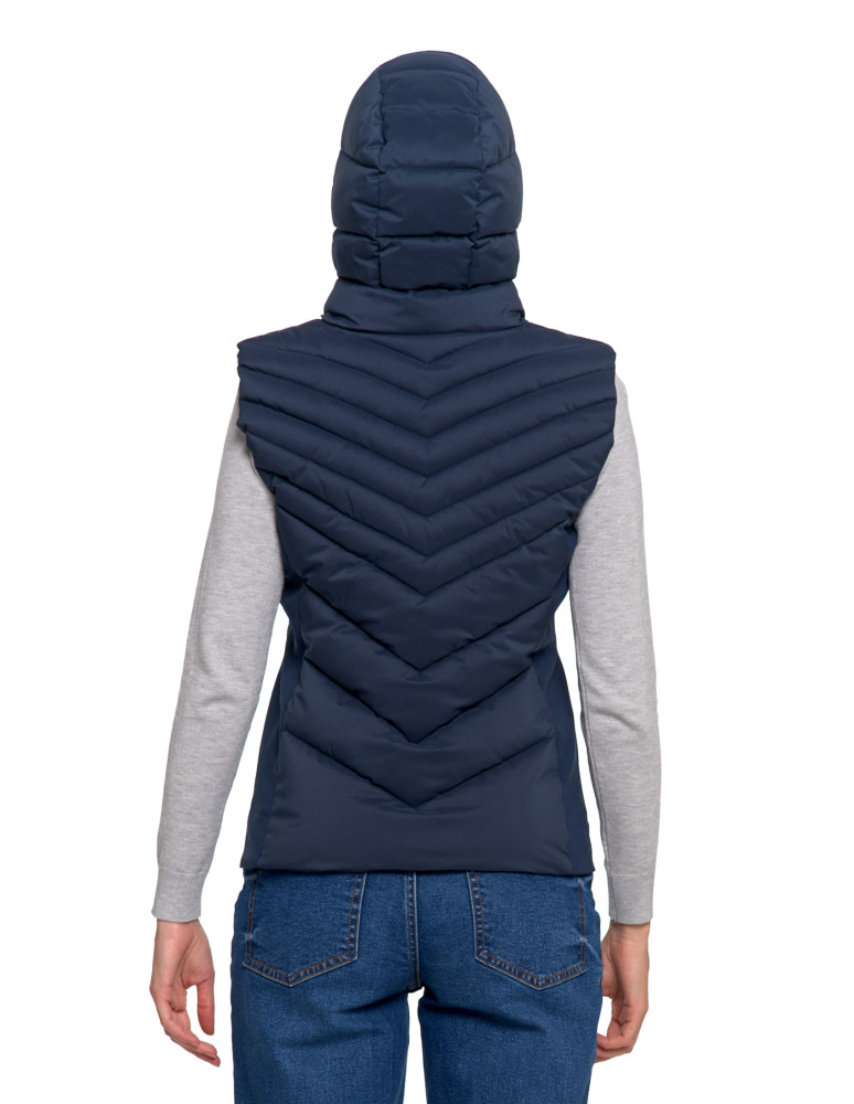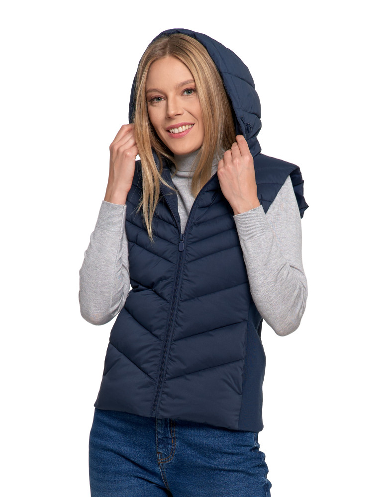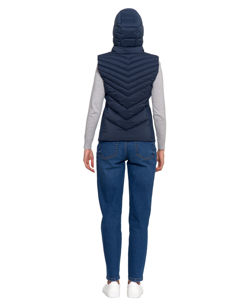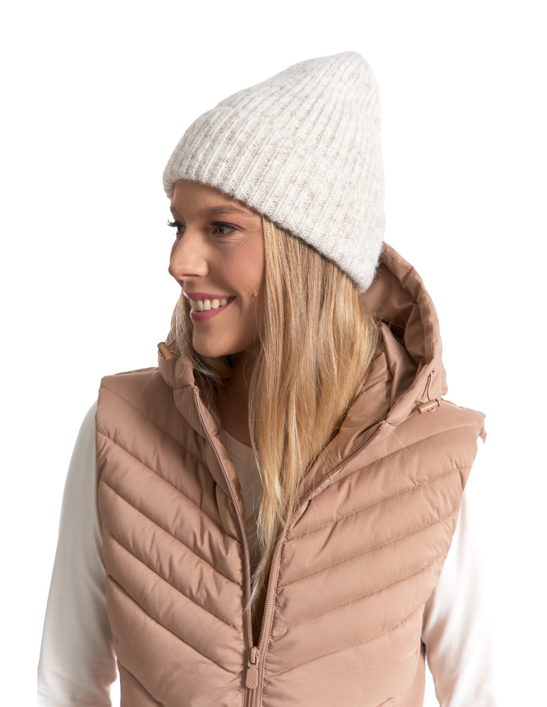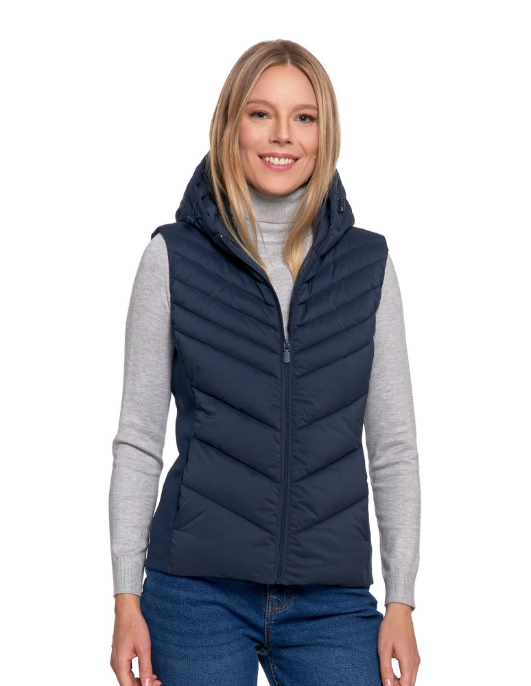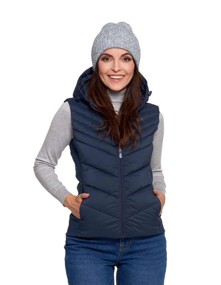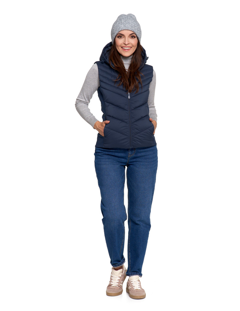 Damska kamizelka krótka pikowana z kapturem BEŻOWY