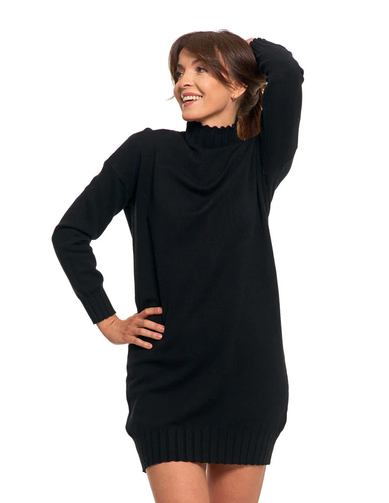 Sukienka damska swetrowa z golfem CZARNY