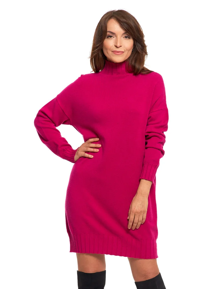 Sukienka damska swetrowa z golfem FUKSJA