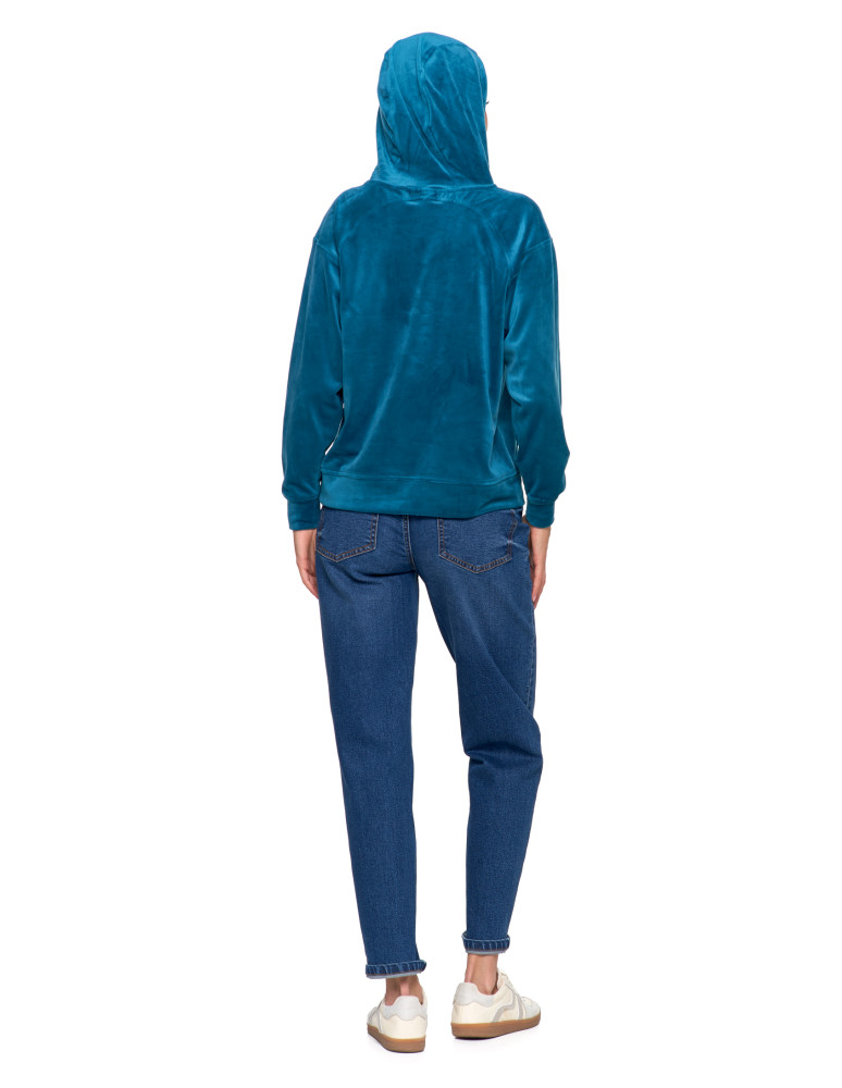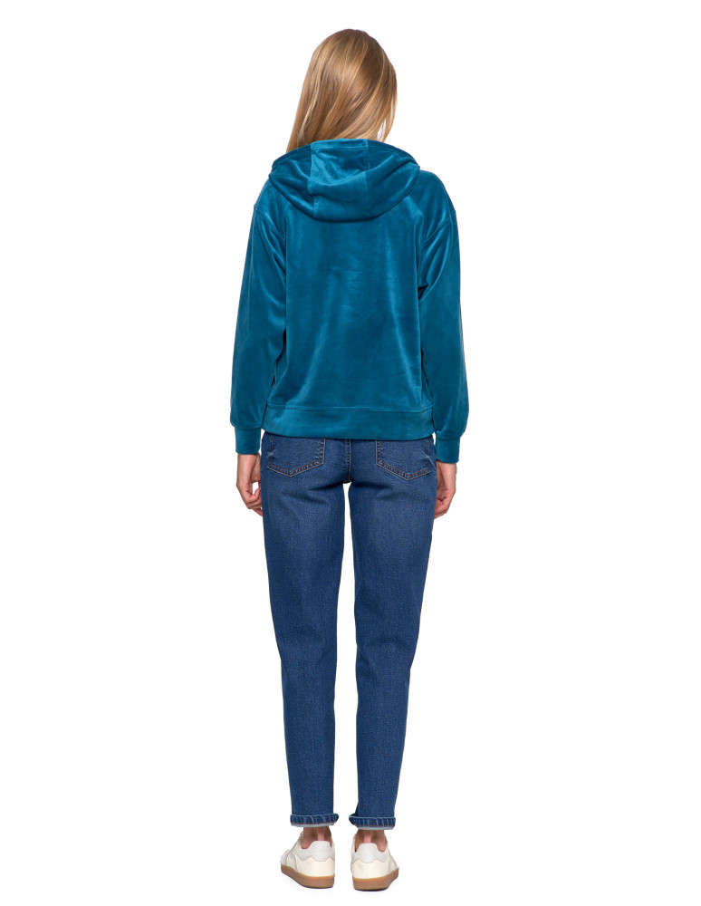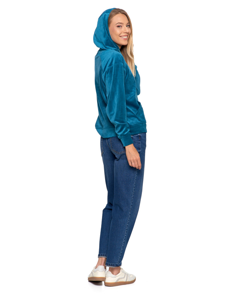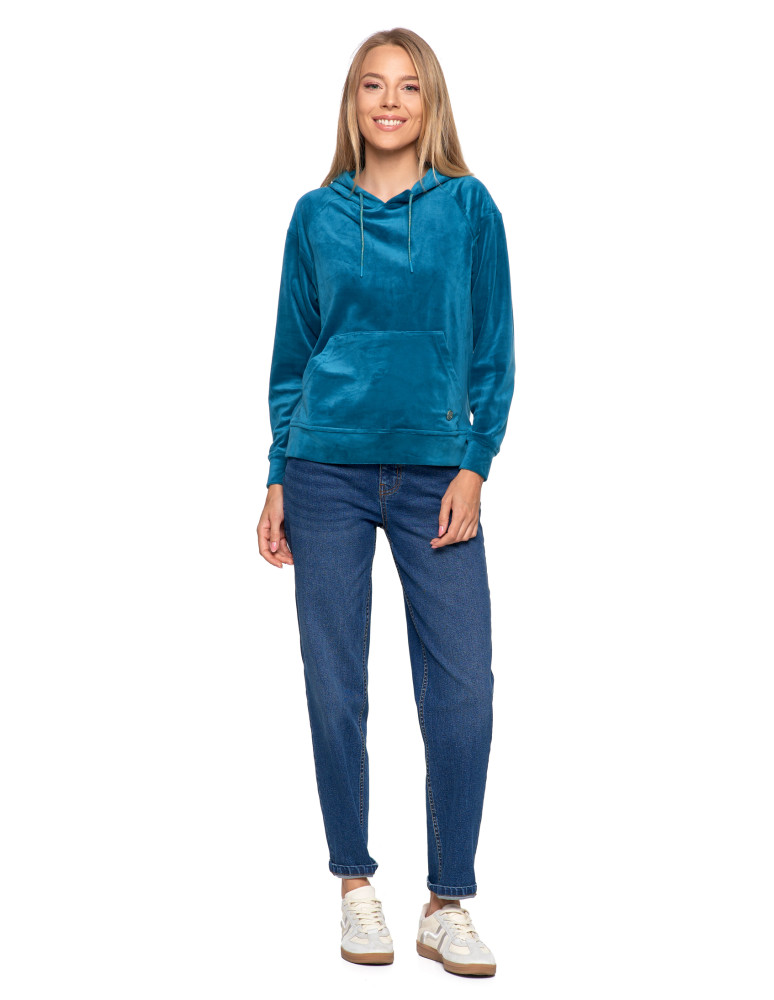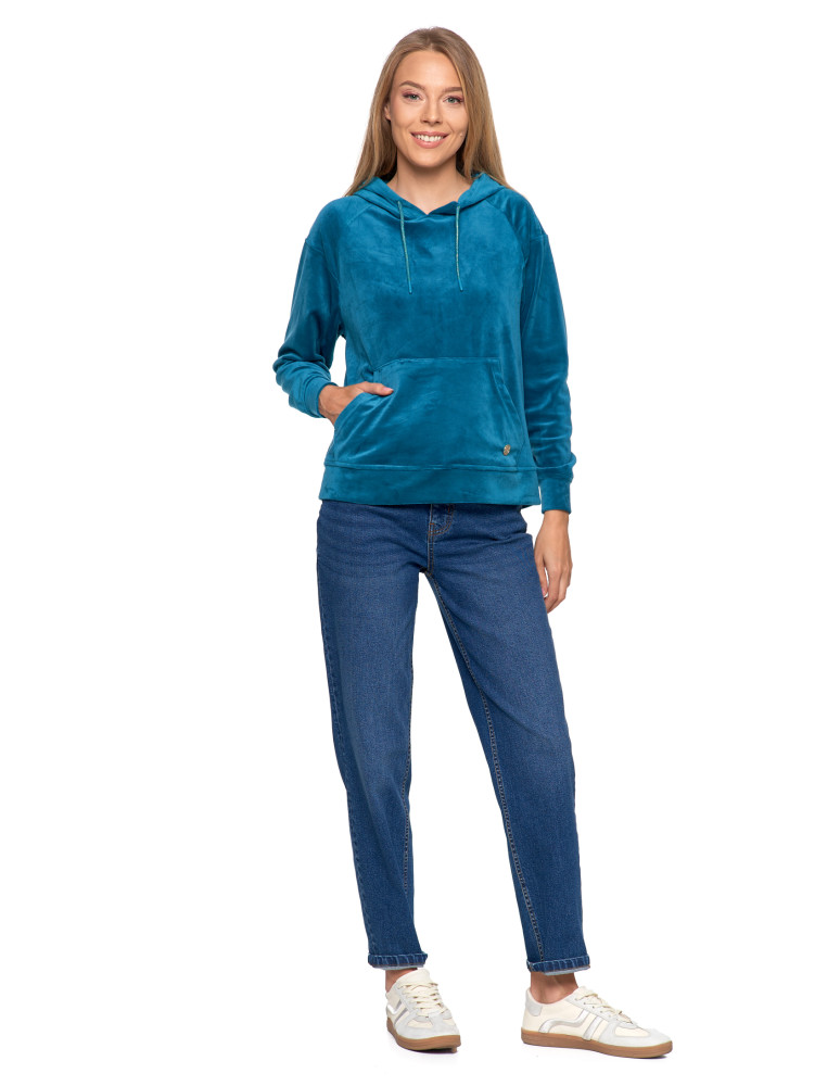 Damska welurowa bluza z kapturem BEŻOWY