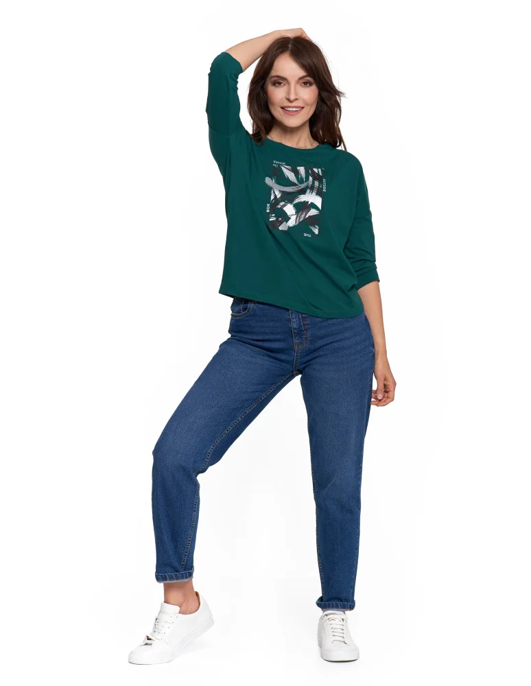 Bluzka damska z rękawem 3/4 i okrągłym dekoltem ZIELONY