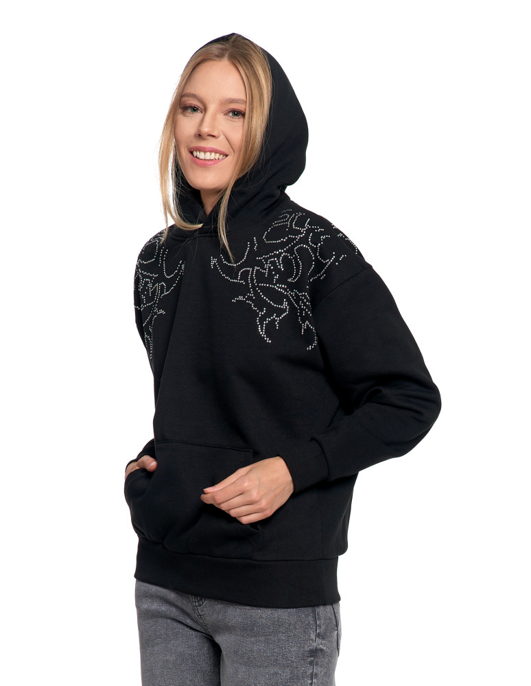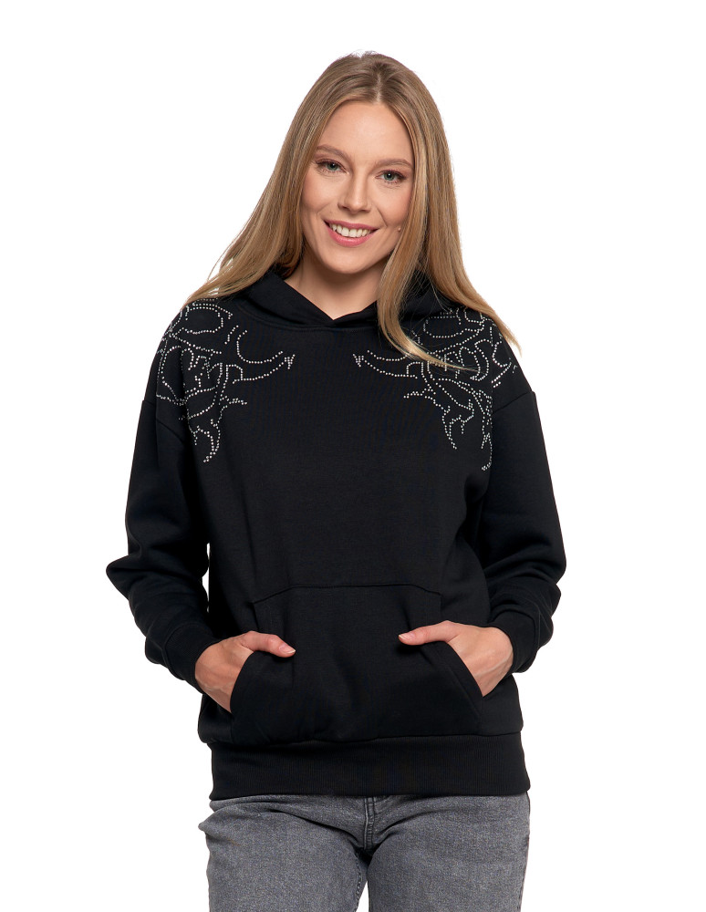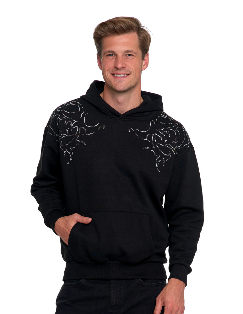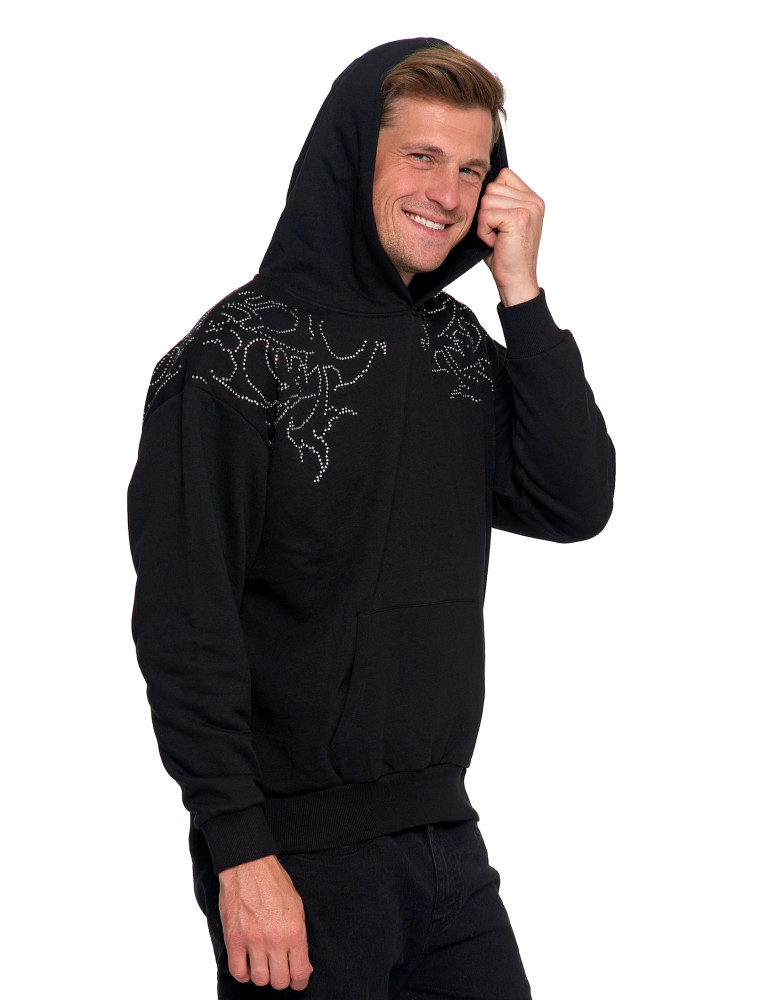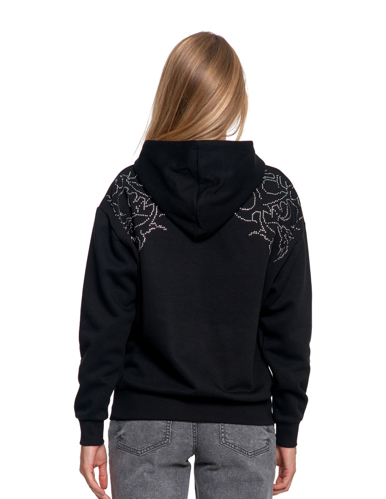 Bluza unisex z kapturem i cyrkoniami ocieplana CZARNY
