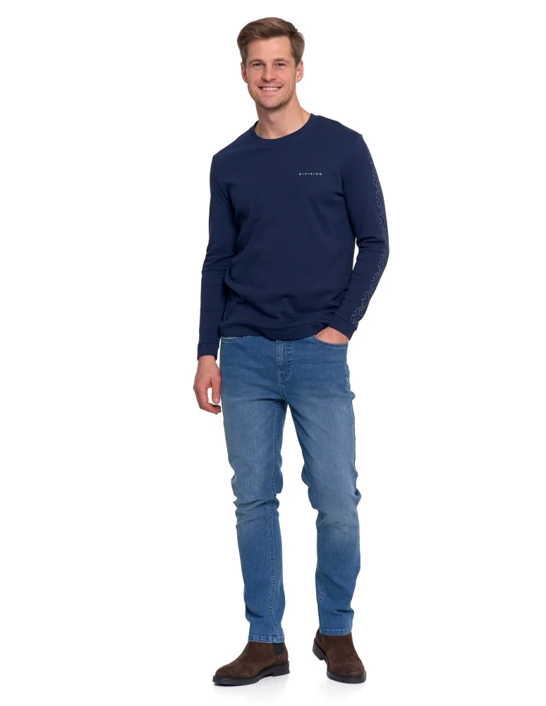 Męska koszulka long bawełniana z minimalistycznym nadrukiem GRANATOWY