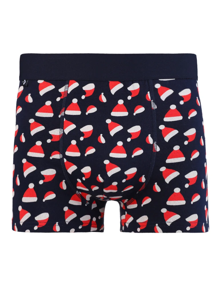 Bawełniane bokserki męskie świąteczne z czapką Mikołaja WIELOKOLOROWY