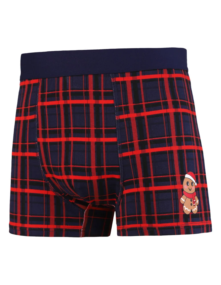 Bokserki męskie świąteczne w kratkę z motywem piernika WIELOKOLOROWY