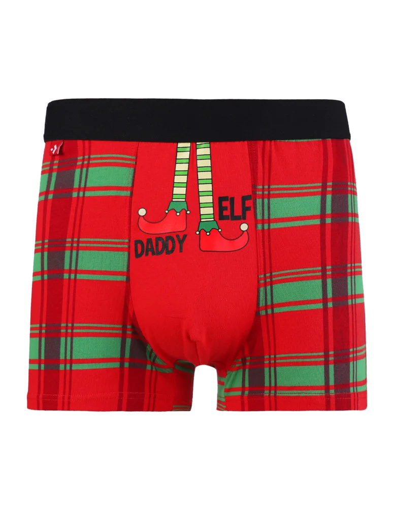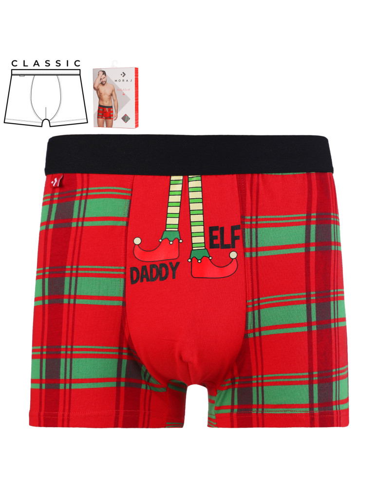 Zabawne męskie bokserki świąteczne z elfem w kratkę to zabawny i stylowy wybór na świąteczny prezent. Wykonane z wysokiej jakości bawełny z domieszką elastanu, zapewniają komfort i doskonałe dopasowanie przez cały dzień. Bokserki w świąteczną czerwoną kratę są ozdobione humorystycznym motywem przedstawiającym nogi elfa oraz napisem "Daddy Elf", co dodaje im oryginalnego charakteru. Elastyczny pas w talii zapewnia wygodę noszenia, a klasyczny krój gwarantuje idealne dopasowanie do sylwetki. Te bokserki to doskonały pomysł na świąteczny prezent, który z pewnością wywoła uśmiech.