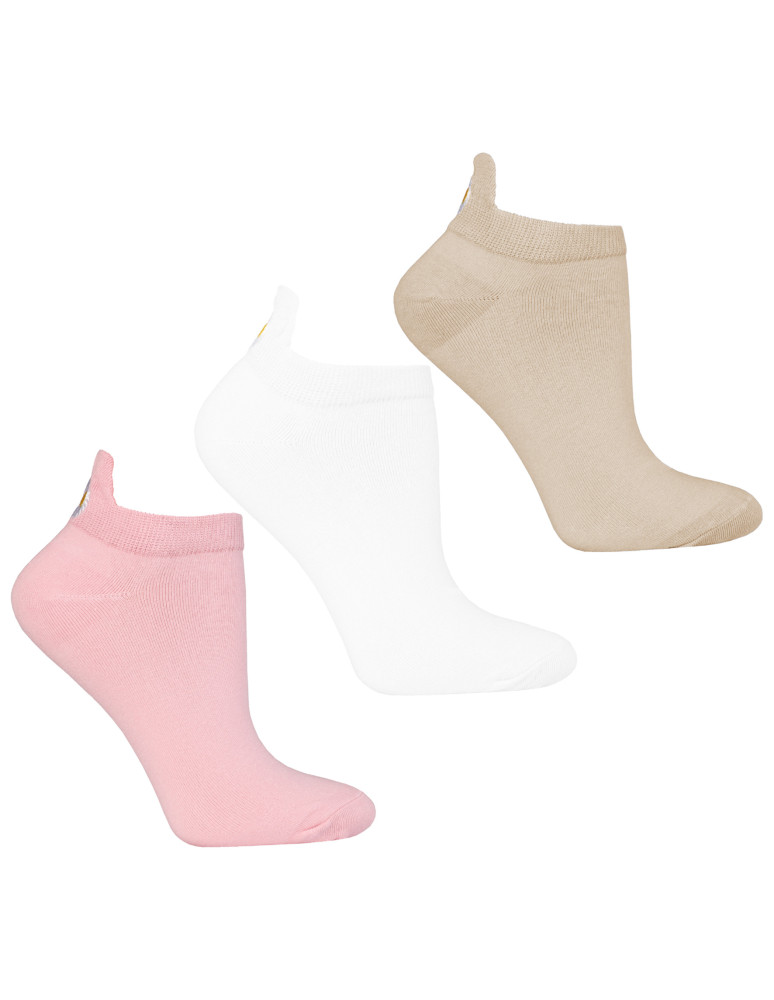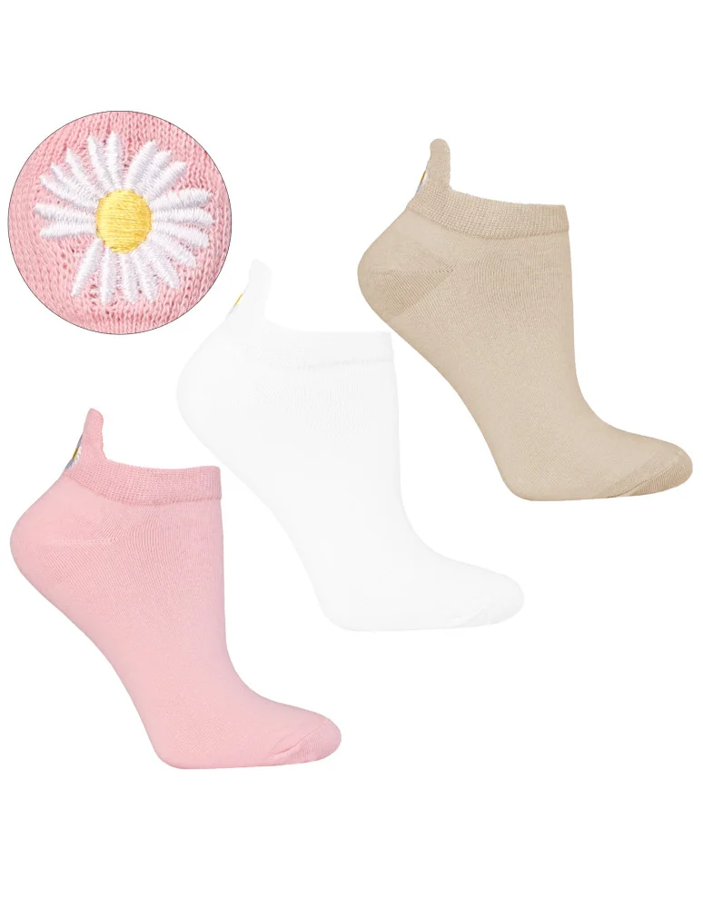 Bawełniane skarpetki stopki damskie z zapiętką haft 3-pak WIELOKOLOROWY