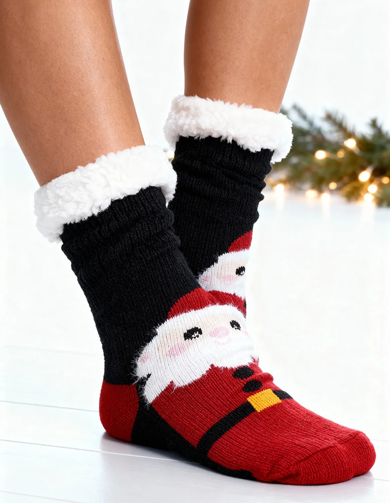 Świąteczne ciepłe skarpety damskie bambosze zimowe CZARNY