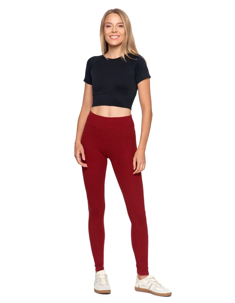 Damskie legginsy z wysokim stanem i prążkowaną strukturą BORDOWY
