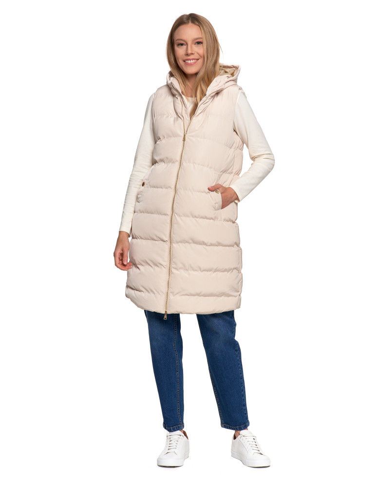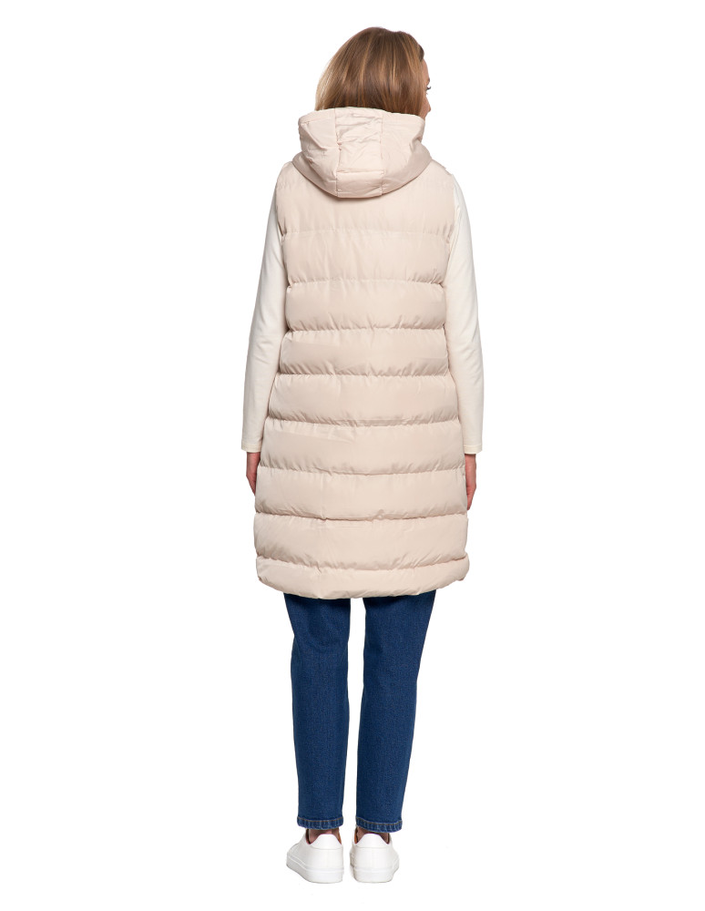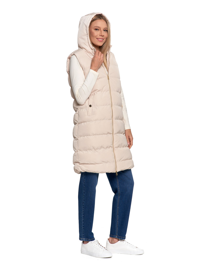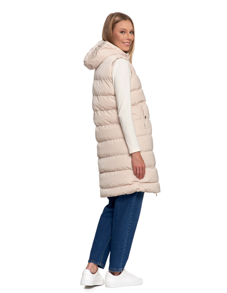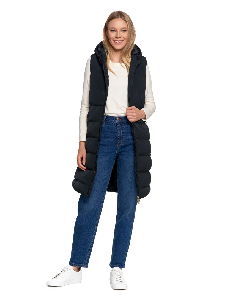 Kamizelka damska puchowa długa z kapturem bezrękawnik CZARNY