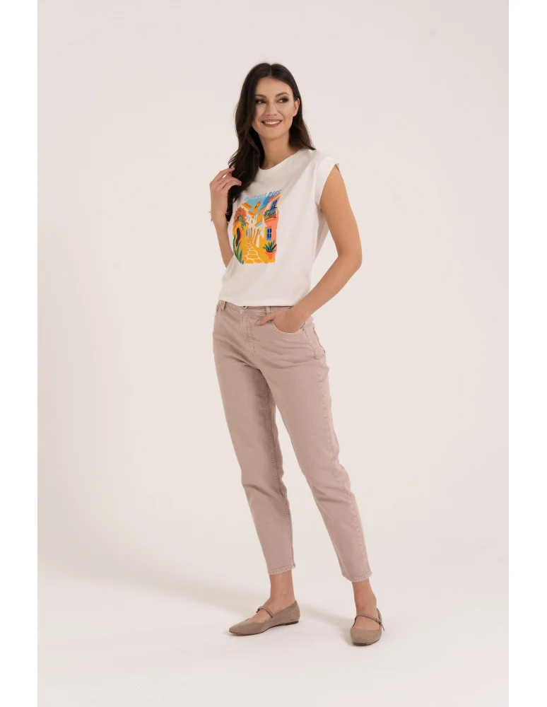 Damskie spodnie jeansowe mom fit JASNY RÓŻOWY