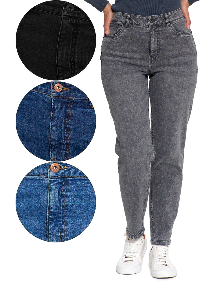 Te damskie spodnie jeansowe w kroju mom fit łączą klasyczny styl z wygodą. Wykonane z wysokiej jakości bawełny z dodatkiem elastanu, zapewniają doskonały komfort noszenia, jednocześnie dopasowując się do sylwetki. Krój mom fit cechuje się luźniejszymi nogawkami, które zwężają się ku dołowi, podkreślając talię i nadając sylwetce modny wygląd. Spodnie posiadają 5 funkcjonalnych kieszeni, w tym drobna kieszonka na monety. Zapięcie na zamek błyskawiczny ułatwia zakładanie i zdejmowanie, a klasyczny, wyższy stan wpisuje się w aktualne trendy. Materiał bawełny z elastanem sprawia, że spodnie są wytrzymałe i elastyczne, co zapewnia wygodę przez cały dzień.