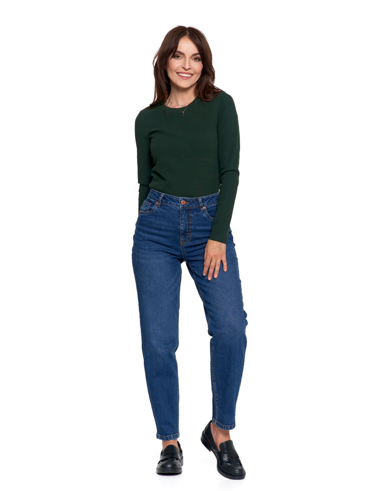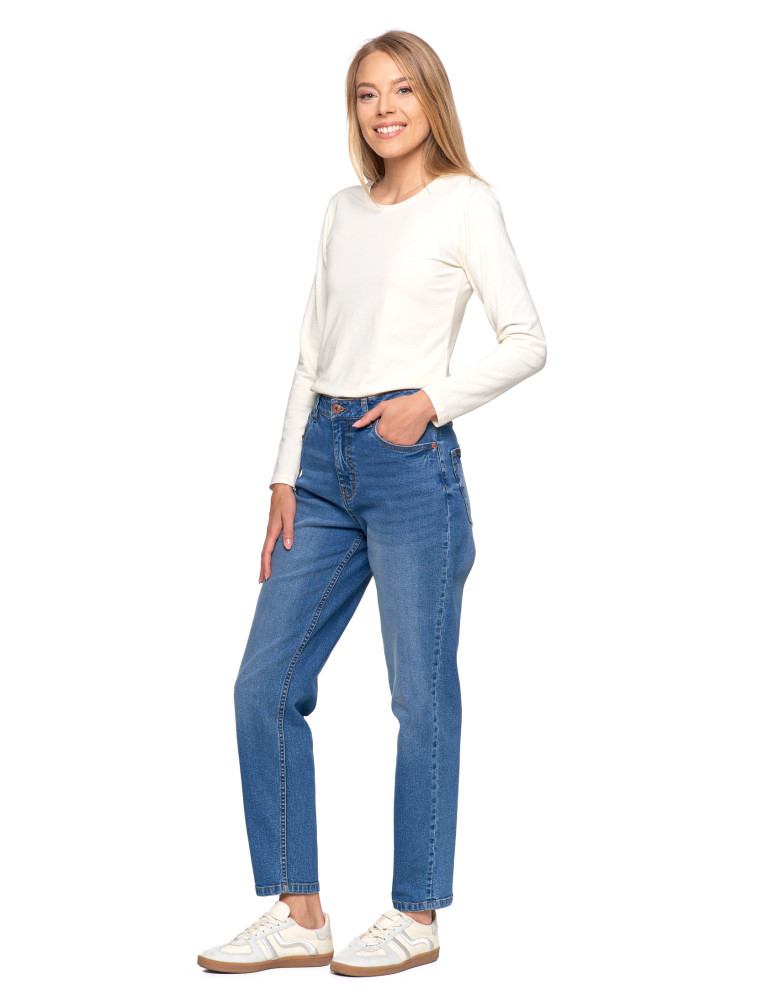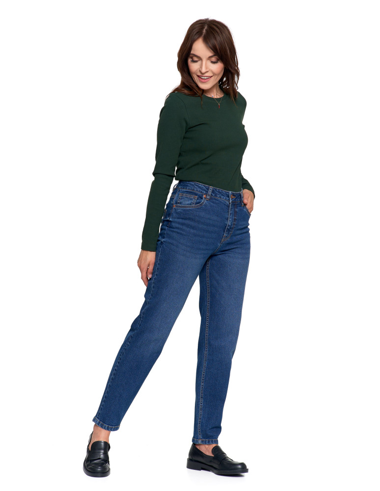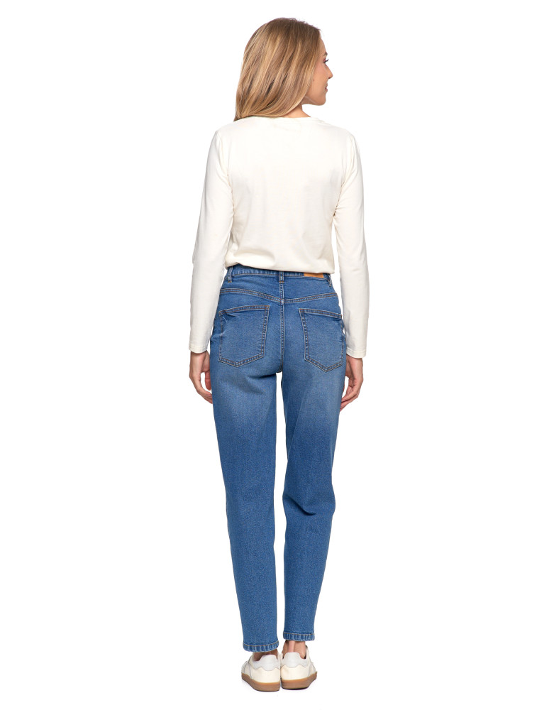 - Krój mom fit - luźniejsze nogawki, zwężające się ku dołowi