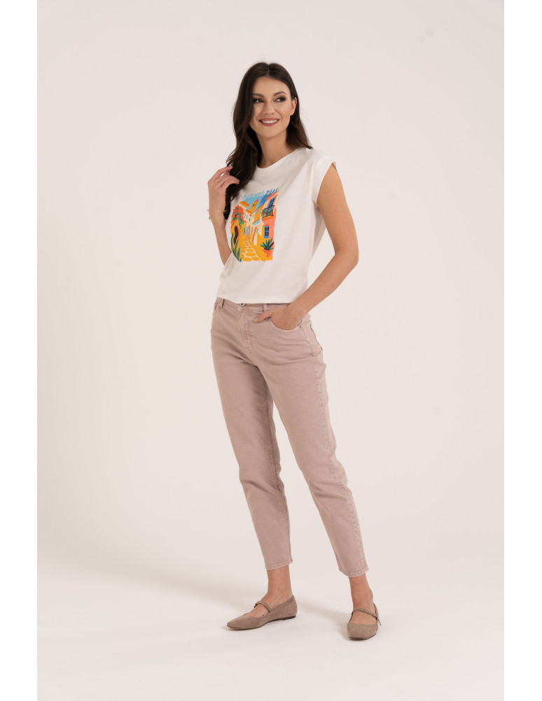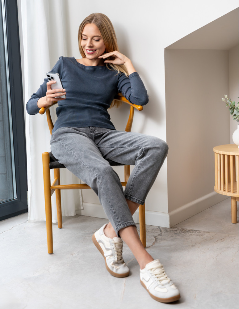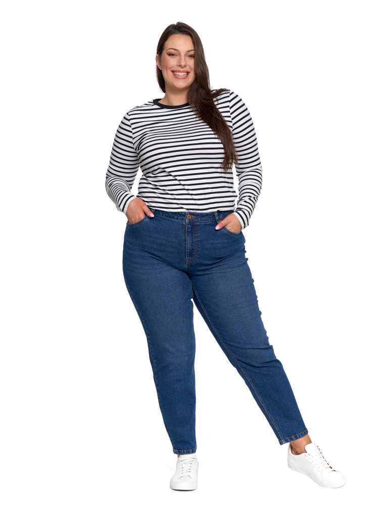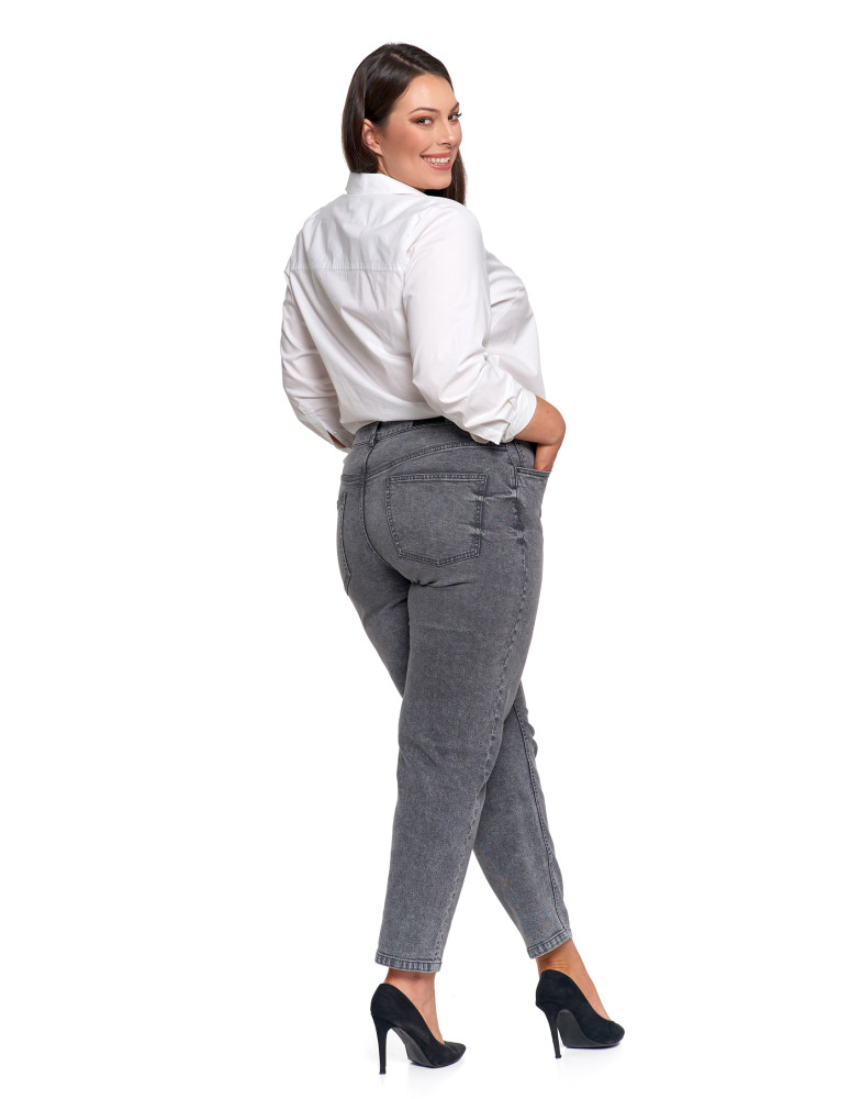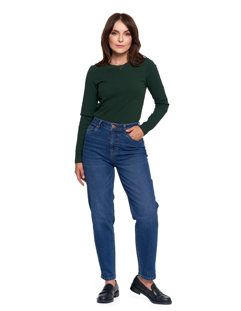 - Krój mom fit - luźniejsze nogawki, zwężające się ku dołowi