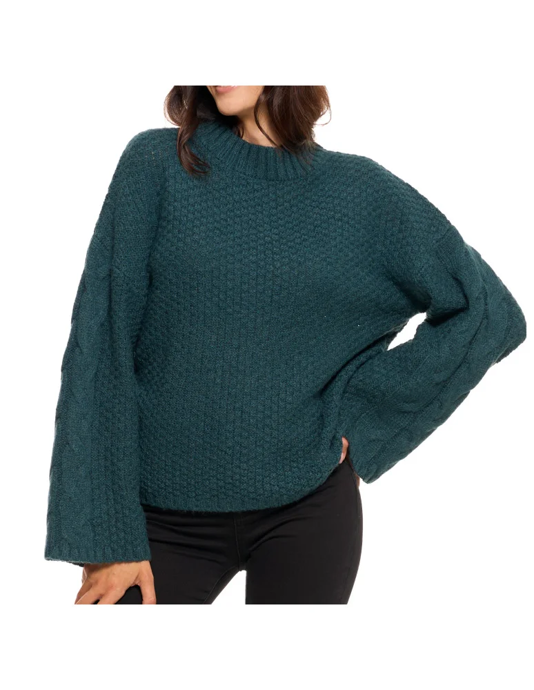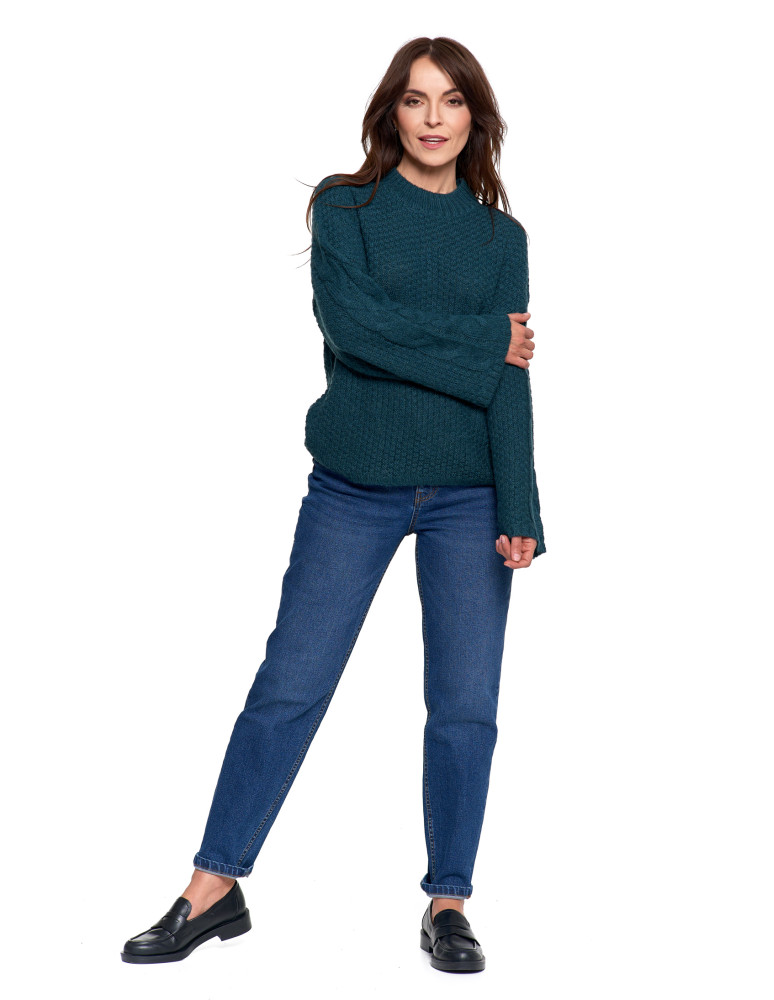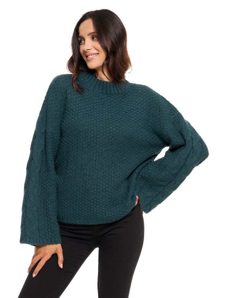 Damski sweter luźny z szerokimi rękawami CIEMNY ZIELONY