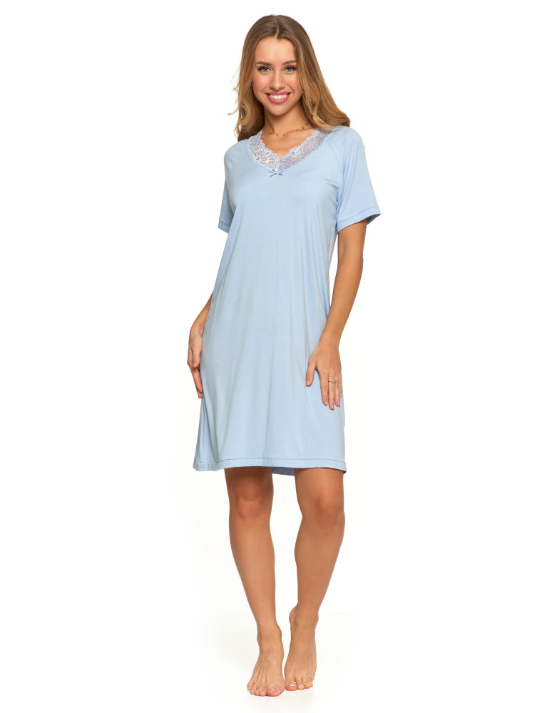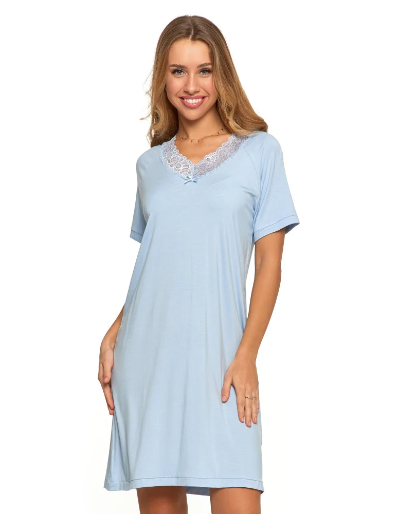 Koszula nocna damska bambusowa z koronkowym dekoltem NIEBIESKI