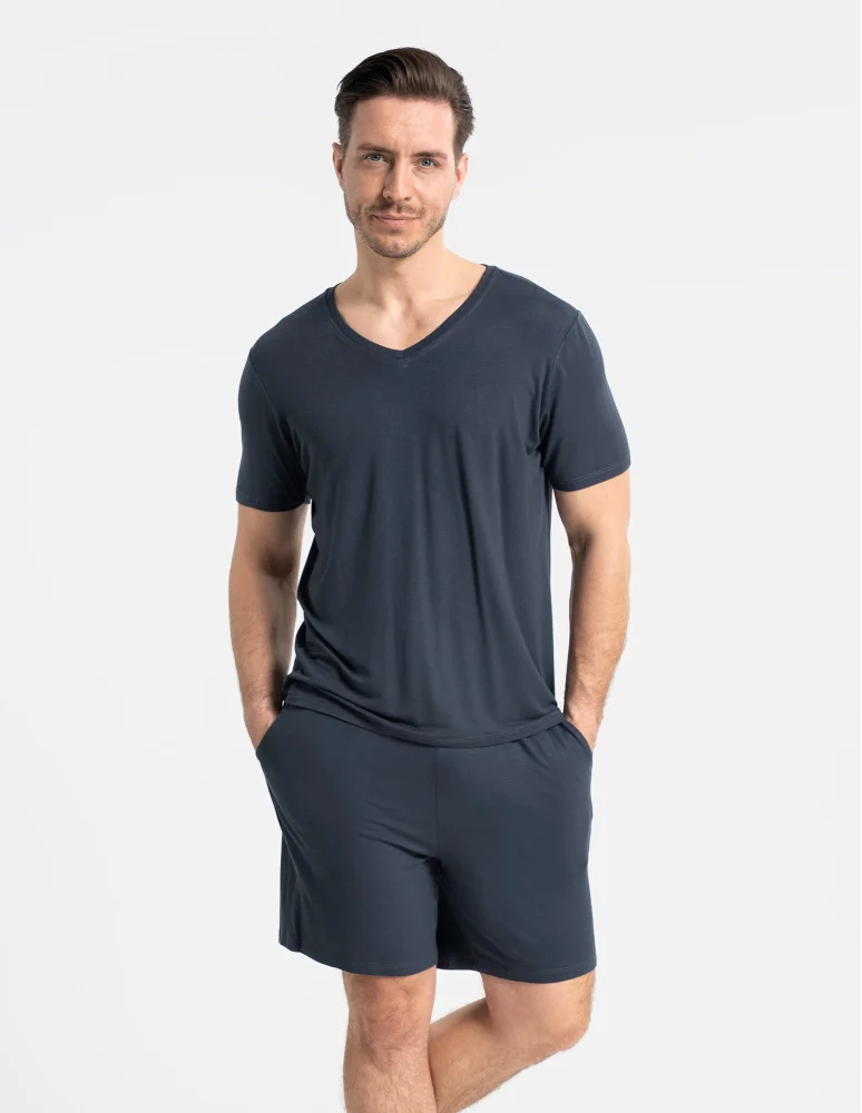 Męska piżama bambusowa z krótkim rękawem i szortami GRAFIT