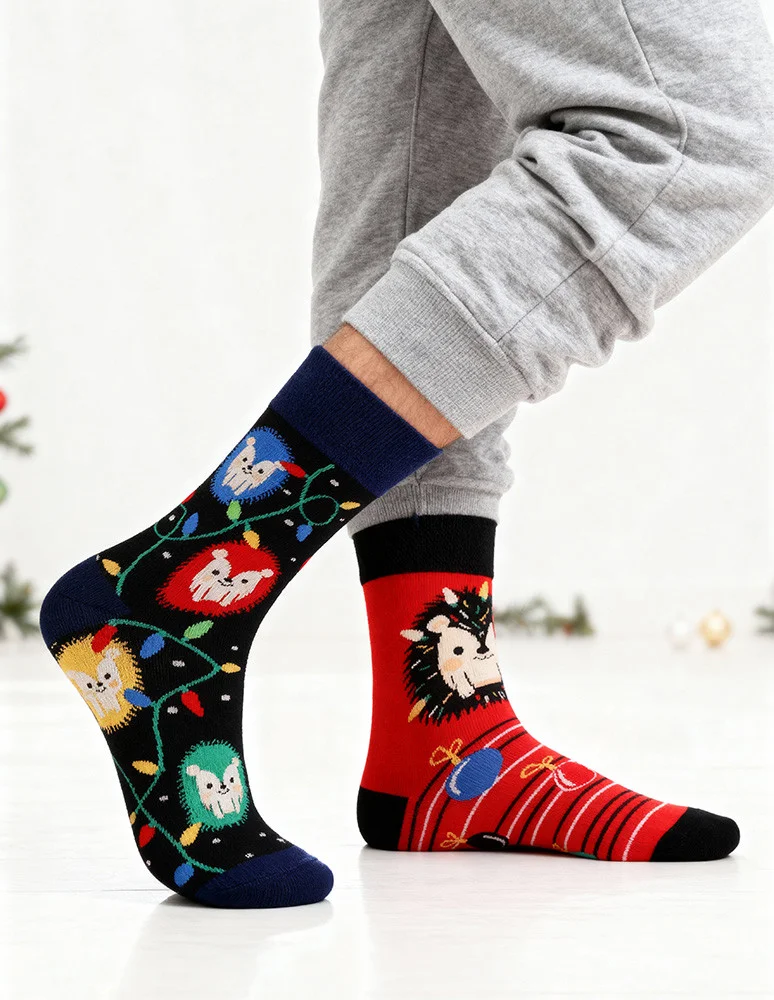 Skarpetki świątecznie nie do pary zabawne w jeże WIELOKOLOROWY