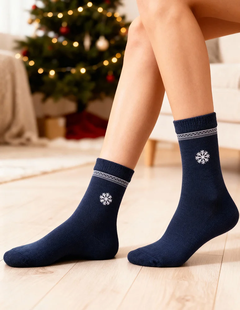 Skarpetki świąteczne damskie śnieżynki i zimowe wzory 2-pak WIELOKOLOROWY