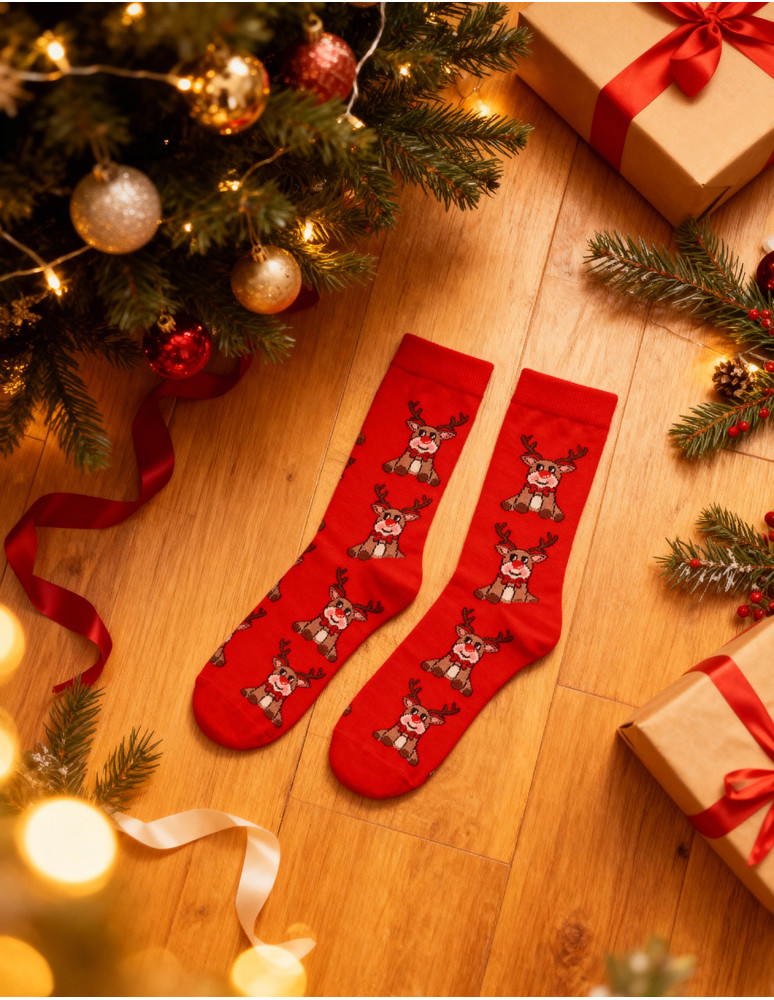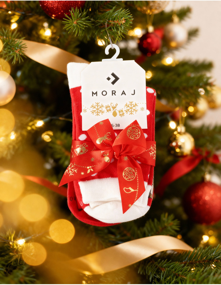 Skarpetki świąteczne damskie z reniferami 2-pak to idealny wybór na zimowe dni, dodający magiczną moc do Twojej świątecznej stylizacji. W zestawie dwie pary wyjątkowe skarpetki: jedna ozdobiona jest klasycznym symbolem w białych kropkach na czerwonym tle z uroczym reniferem na palcach, a druga – pełnych uroczych reniferów, które wydają, że każdy krok będzie bardziej uroczysty. Wykonane z miękkiej, elastycznej bawełny, skarpetki nie tylko stylowe, ale także komfort i ciepło w chłodniejsze dni. Idealnie stosować się do stosowania zarówno w domu, jak i na zewnątrz. Urocza kokarda, która owija zestaw, tworzy także pomysł na mały, świąteczny prezent – doskonały na Mikołajki lub inne świąteczne okazje. To upominek, który z użycia może wywołać uśmiech!