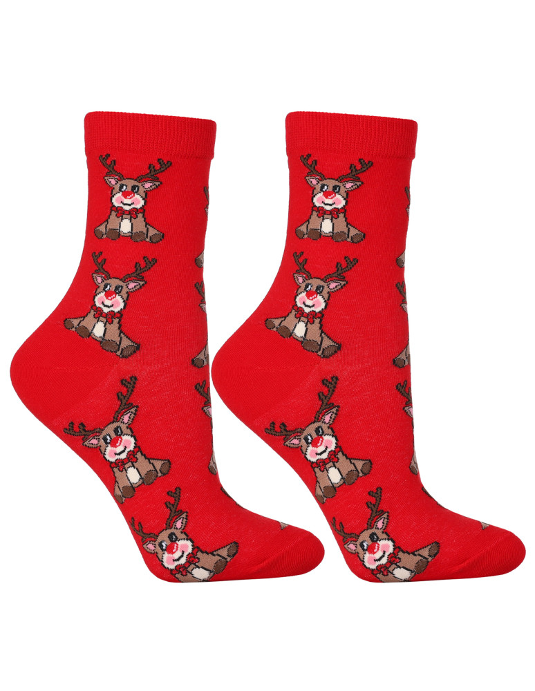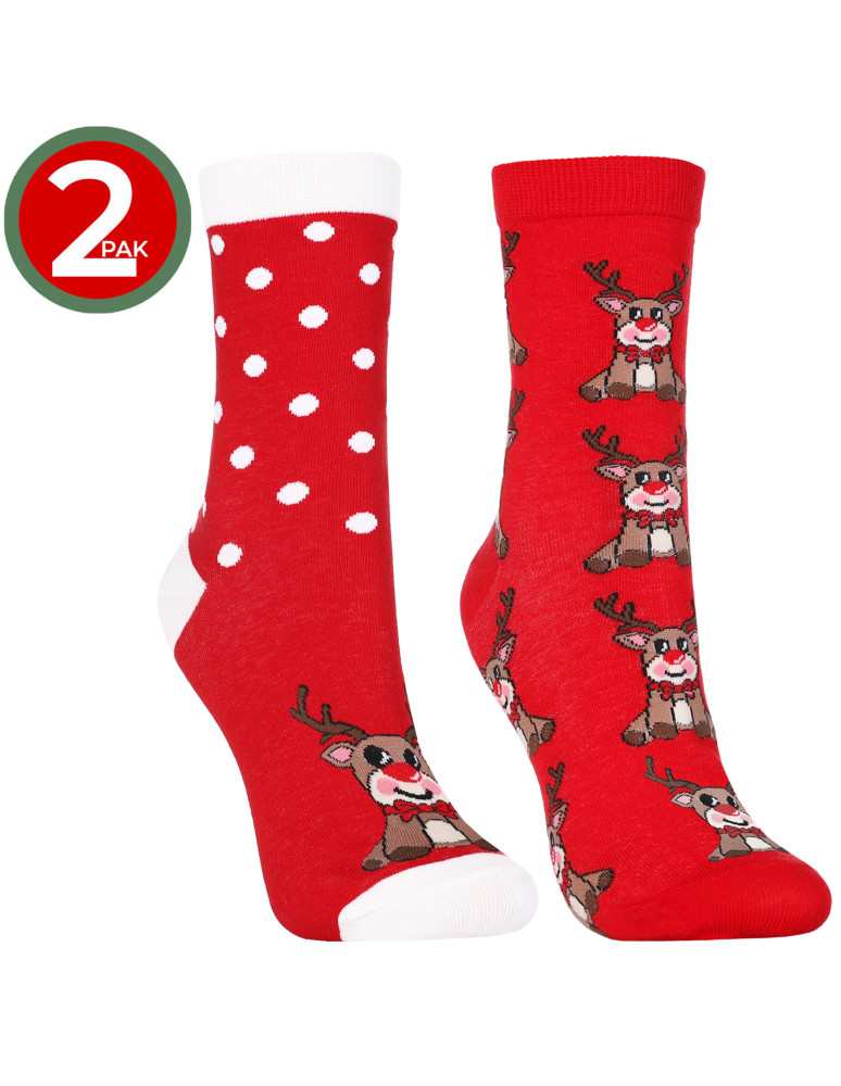 Skarpetki świąteczne długie damskie z reniferami 2-pak WIELOKOLOROWY