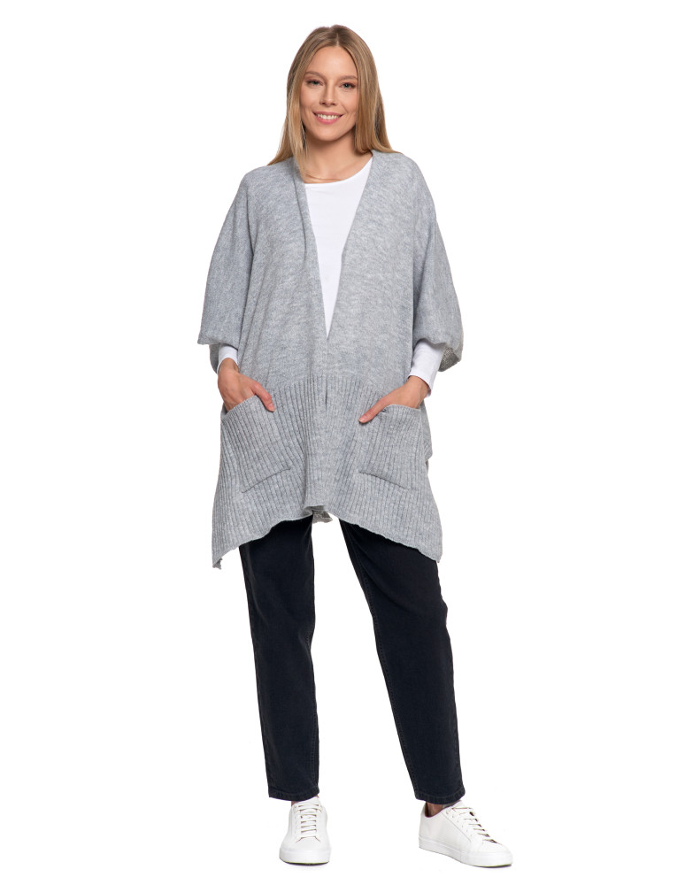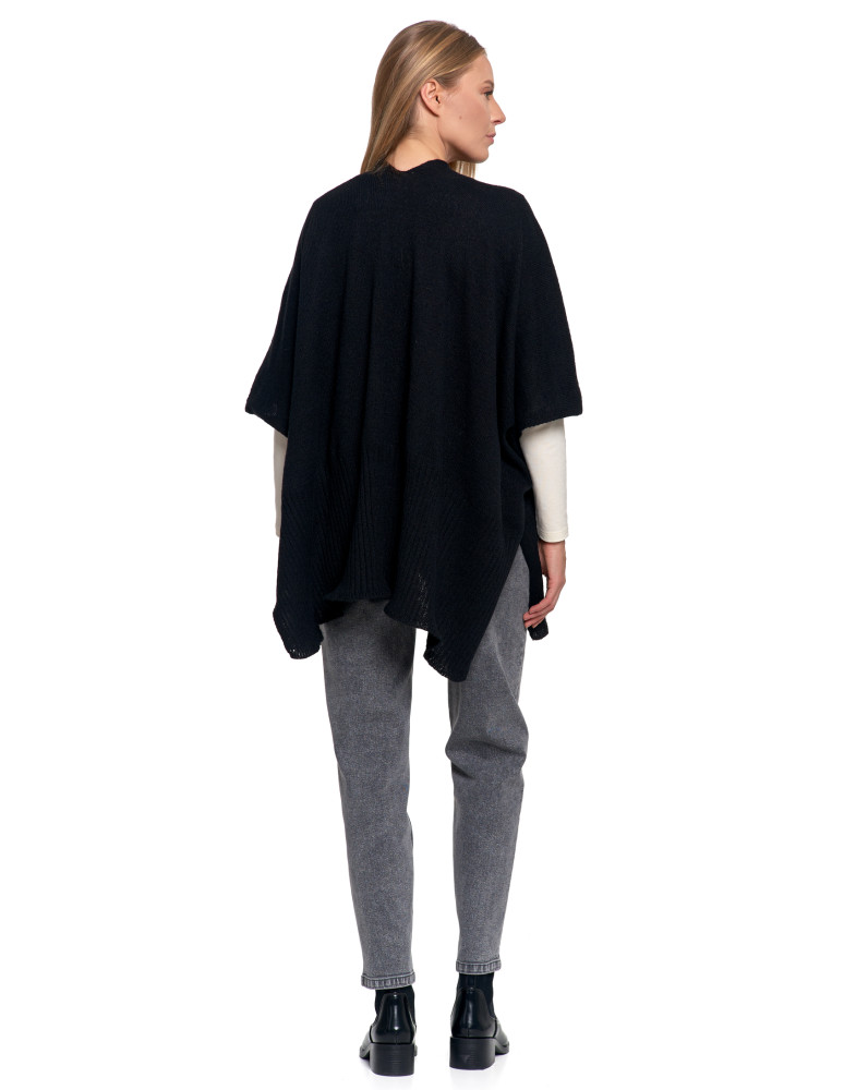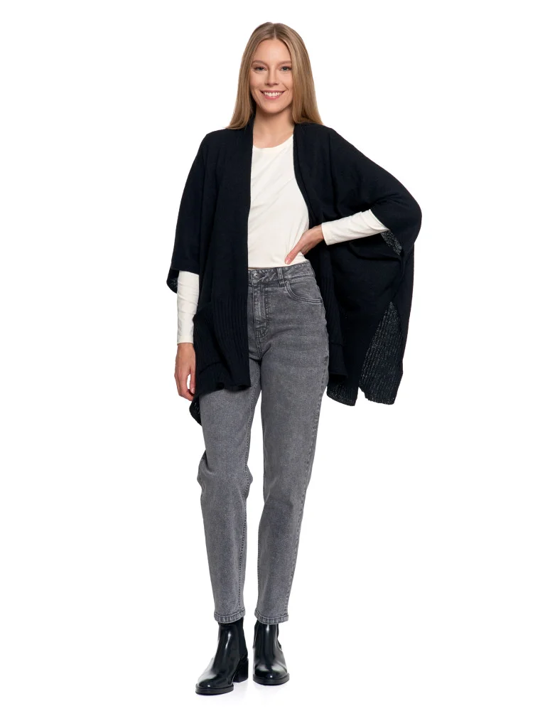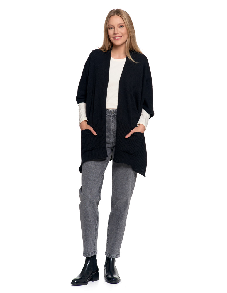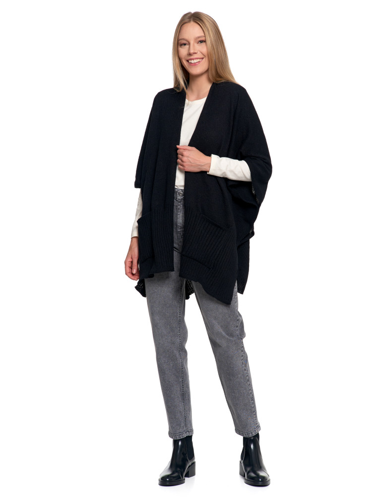 Stylowe ponczo damskie z kieszeniami CZARNY