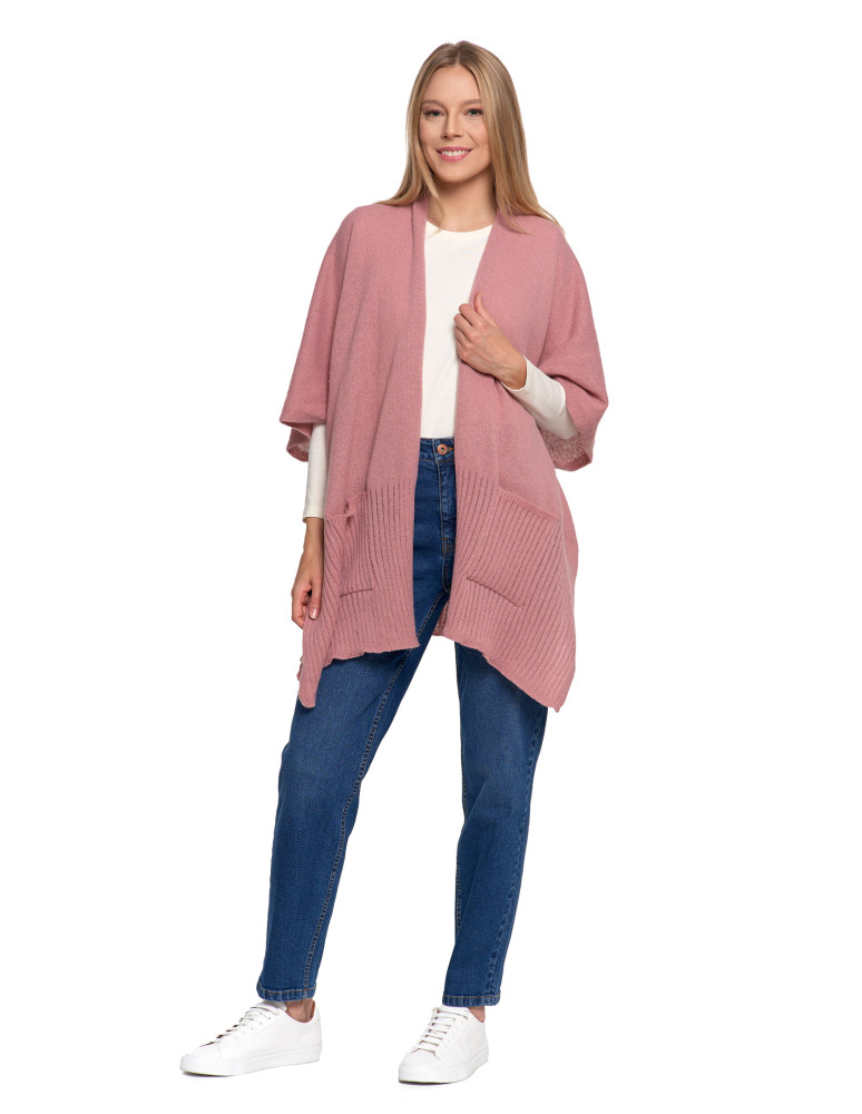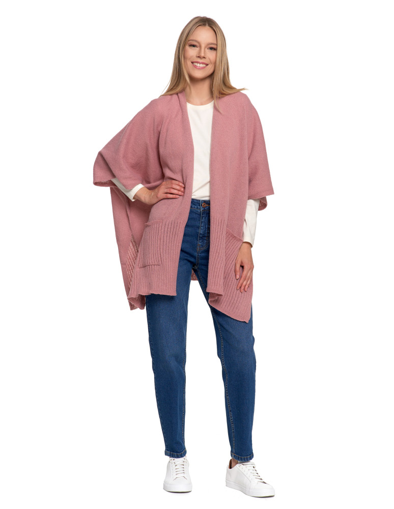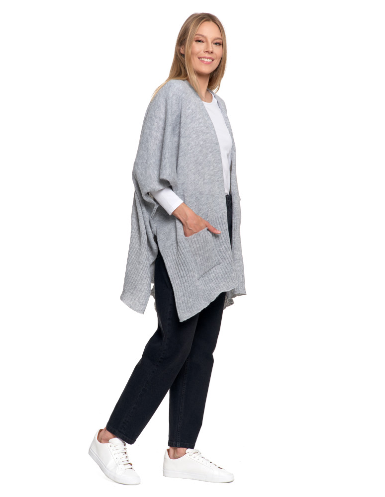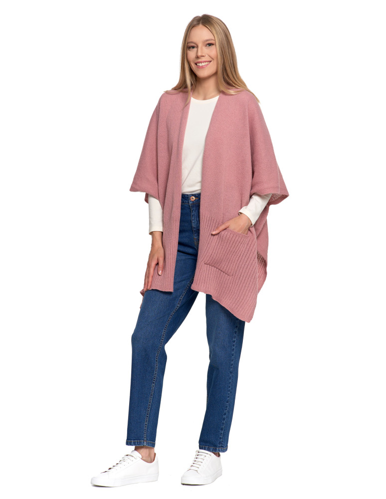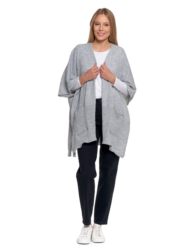 Stylowe ponczo damskie z kieszeniami CZARNY