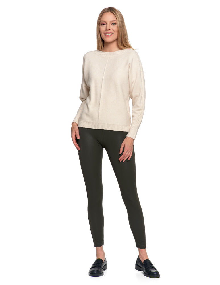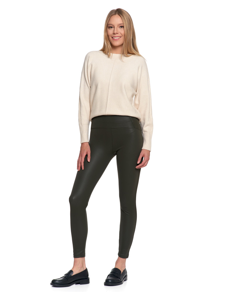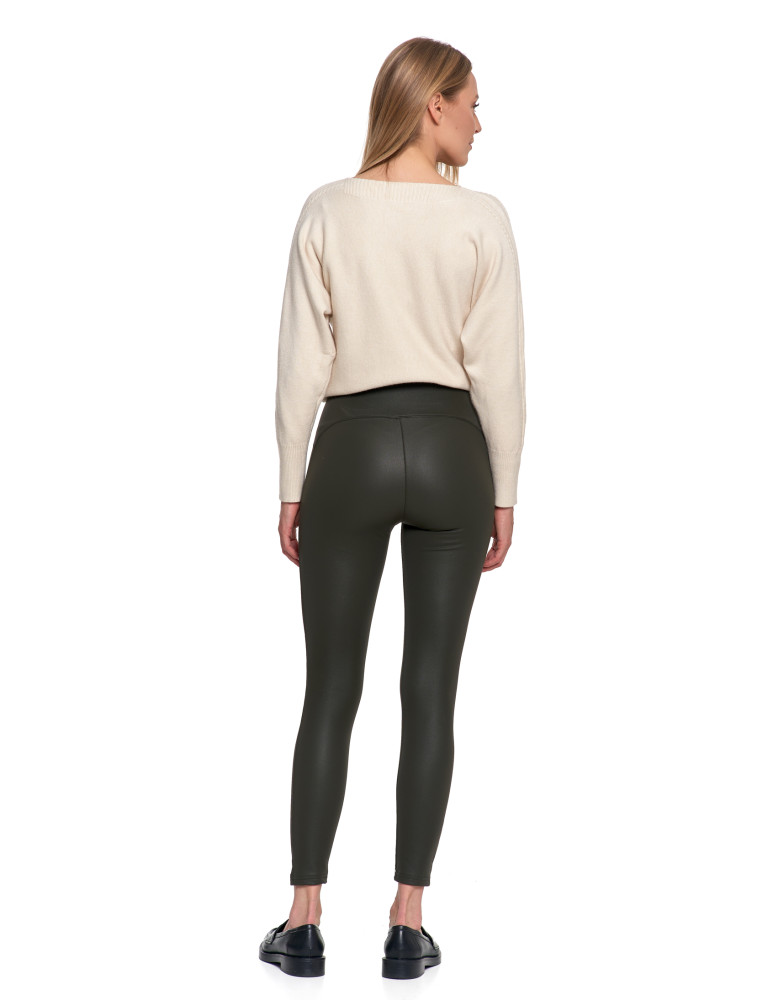 Legginsy damskie z wysokim stanem imitujące skórę CZARNY