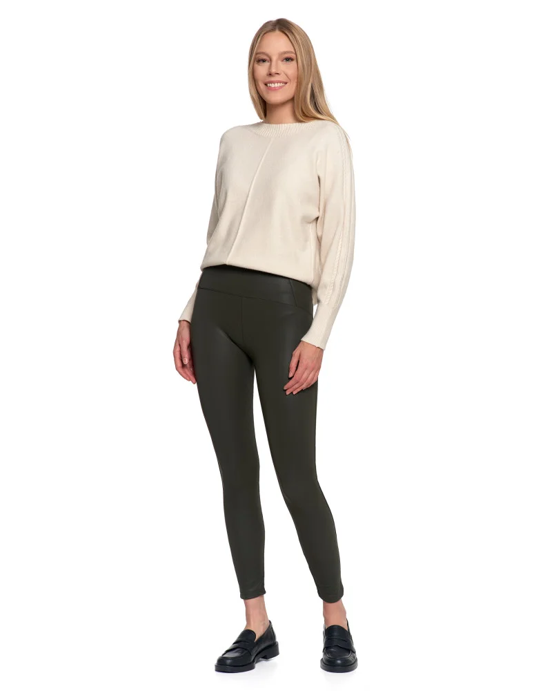 Legginsy damskie z wysokim stanem imitujące skórę KHAKI