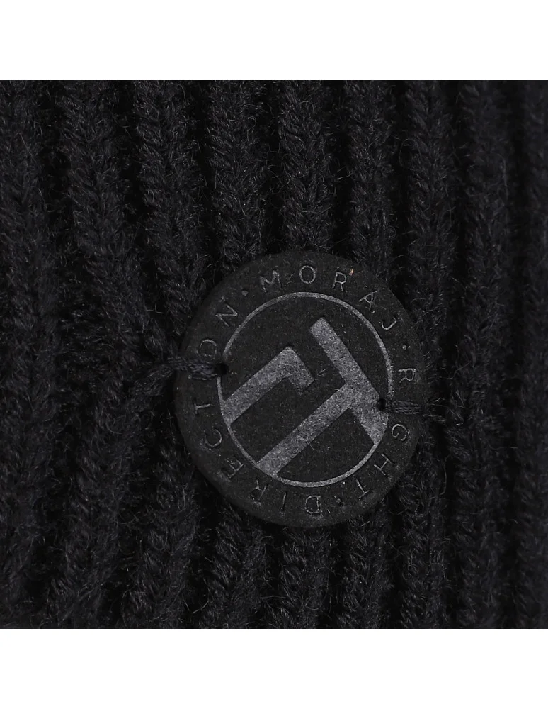 Czapka damska zimowa beanie prążkowana z naszywką CZARNY