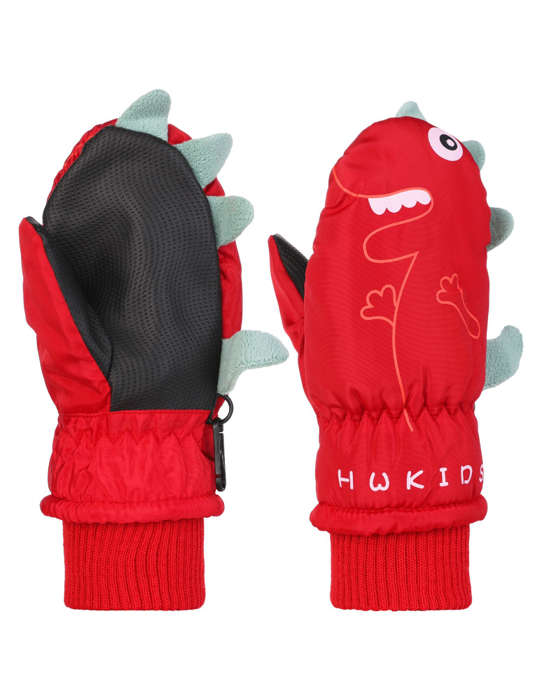 Rękawiczki zimowe dziecięce jednopalczaste w dinozaury NIEBIESKI