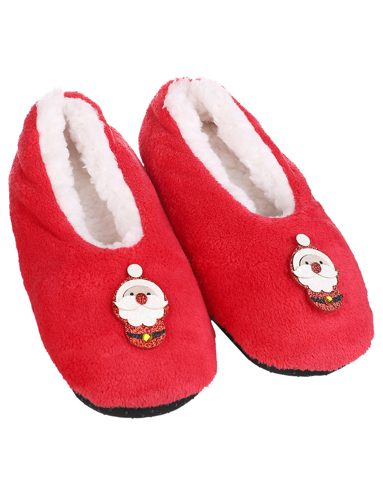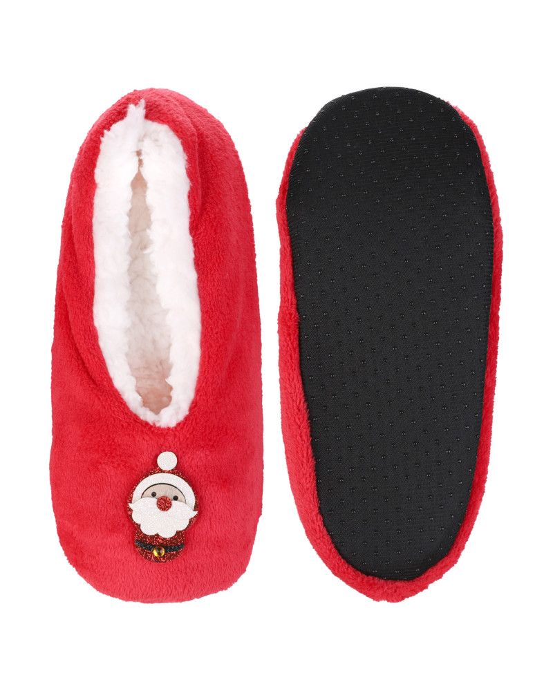 Świąteczne kapcie wsuwane z futerkiem i ozdobnym motywem BRĄZOWY