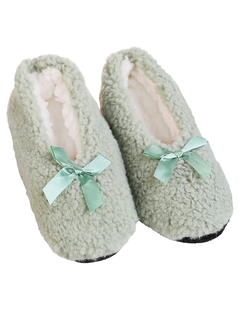 Damskie kapcie domowe wsuwane z kokardką bambosze Miętowy