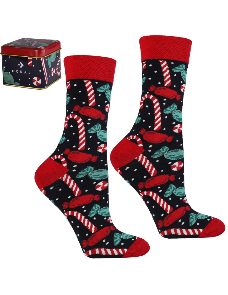 Skarpetki męskie świąteczne bawełniane w ozdobnej puszce WIELOKOLOROWY