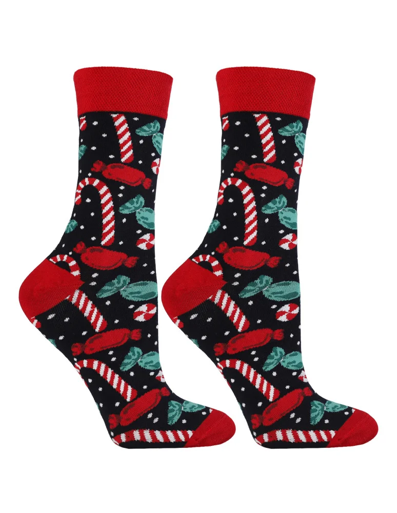 Te świąteczne skarpetki z motywem cukierków to doskonały dodatek do świątecznej garderoby! Ozdobione kolorowymi wzorami cukrowych lasek i innych słodkości, przyciągają uwagę i wprowadzają radosny klimat. Skarpetki wykonane są z miękkiego i elastycznego materiału, co zapewnia wygodę noszenia przez cały dzień.