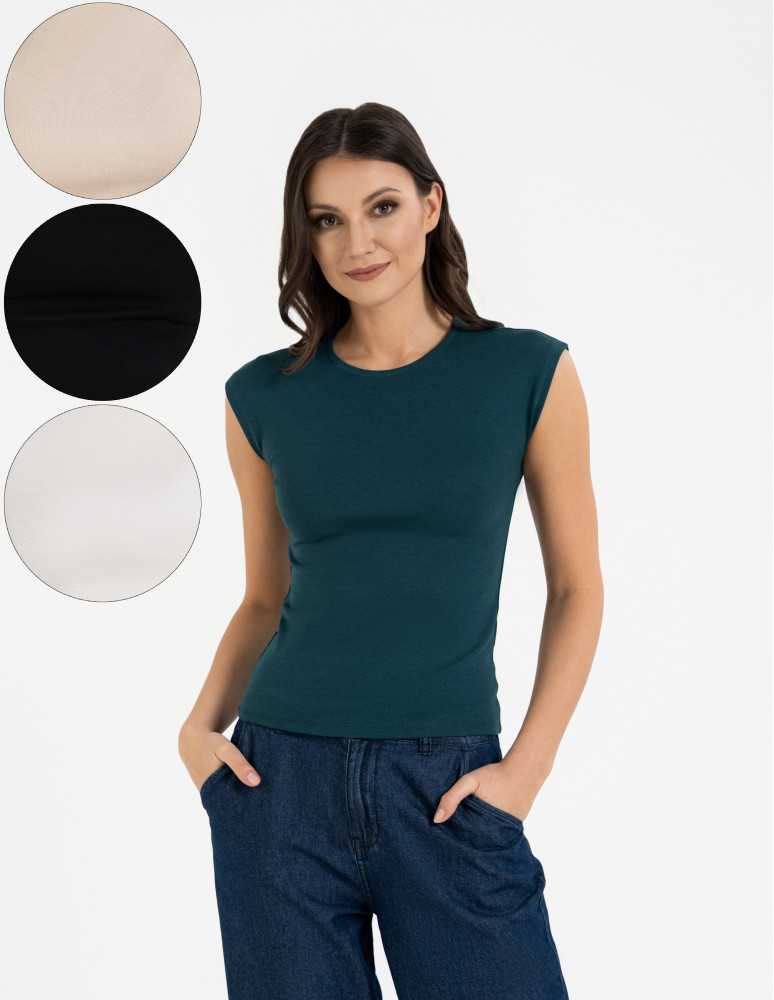 Bluzka damska prążkowana z krótkim rękawem cap sleeve CZARNY