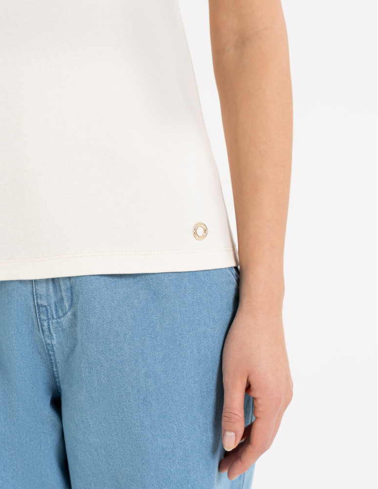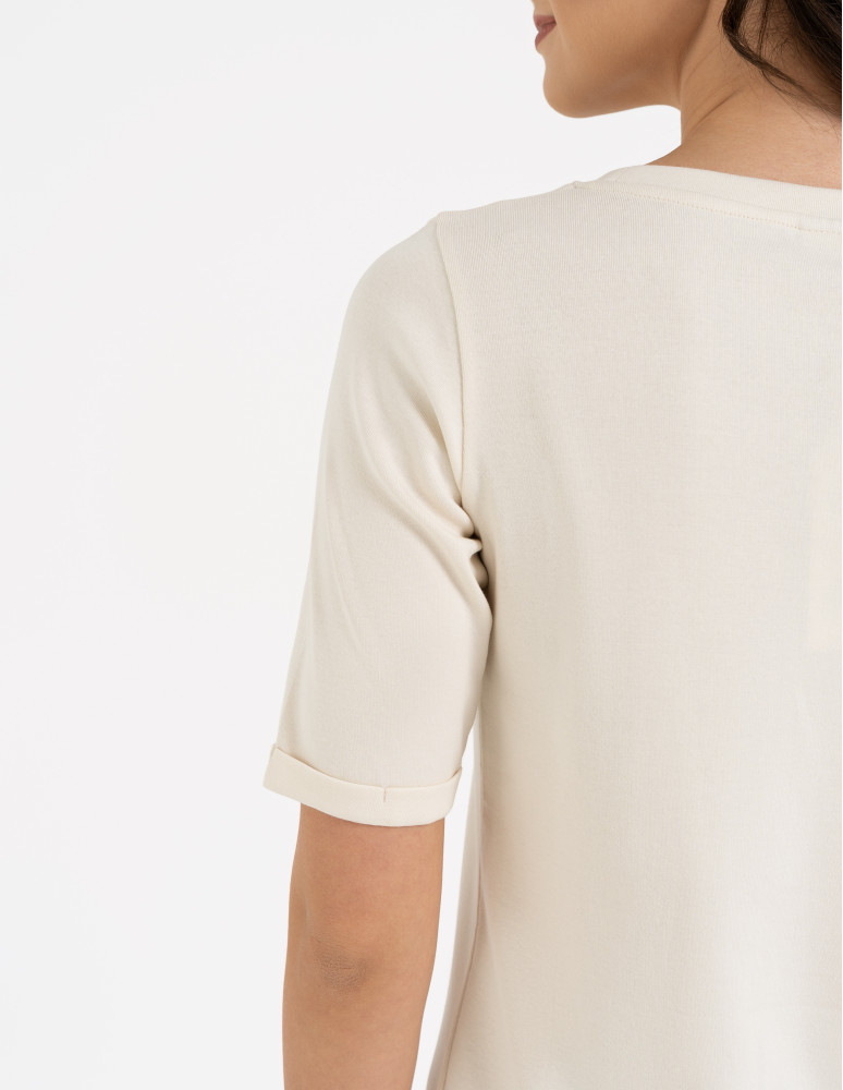 Bluzka damska z krótkim rękawem bawełniana bez wzoru BEŻOWY